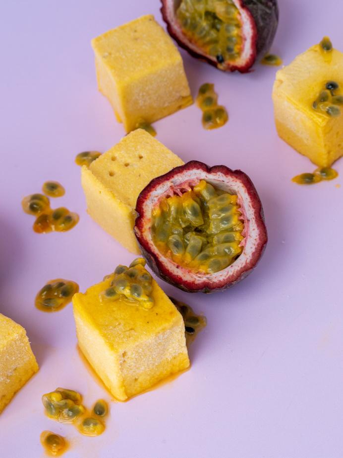 Fluffy, chewy and delicious, raspberry, passionfruit and vanilla.
