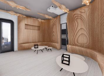 Tcaci Evelina Design Studio’s visionary interior design project. This intent to be a groundbreaking endeavor that transforms a 100m2 space into a dynamic showcase of parametric architecture. This innovative concept shapes the contours of the entire environment, with walls embracing diverse forms that seamlessly integrate functionality, decorations, furniture, and construction.