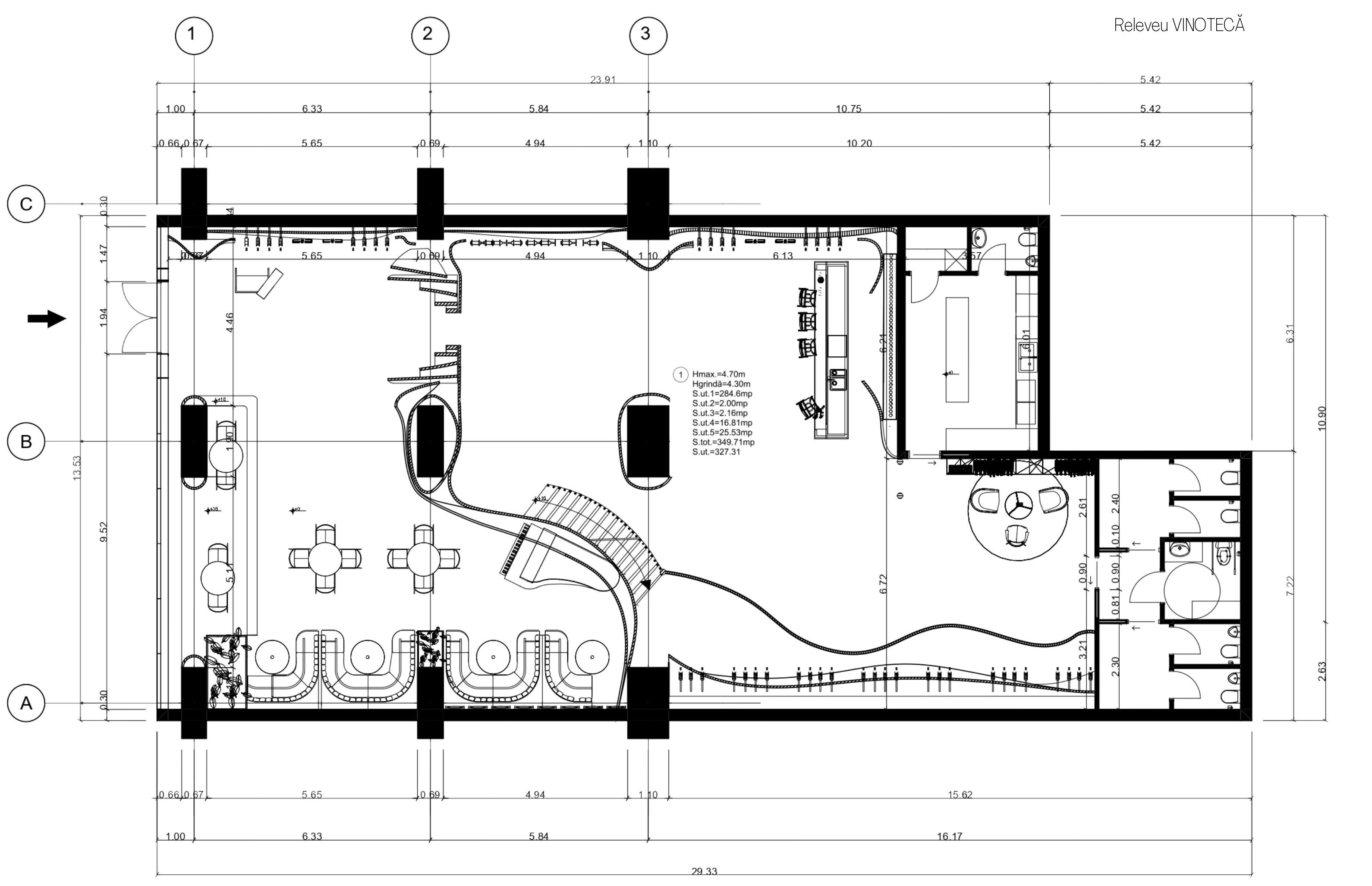 Wine Desert, an extraordinary vinoteca nestled in the heart of Timisoara, Romania. This architectural gem unfolds as a multi-functional space, seamlessly integrating a restaurant area, a tasting zone, a masterclass area, a bar, and a service space on the building’s upper floor. Wine Desert caters to wine enthusiasts and those seeking a unique experience within its carefully orchestrated scenographic setting.