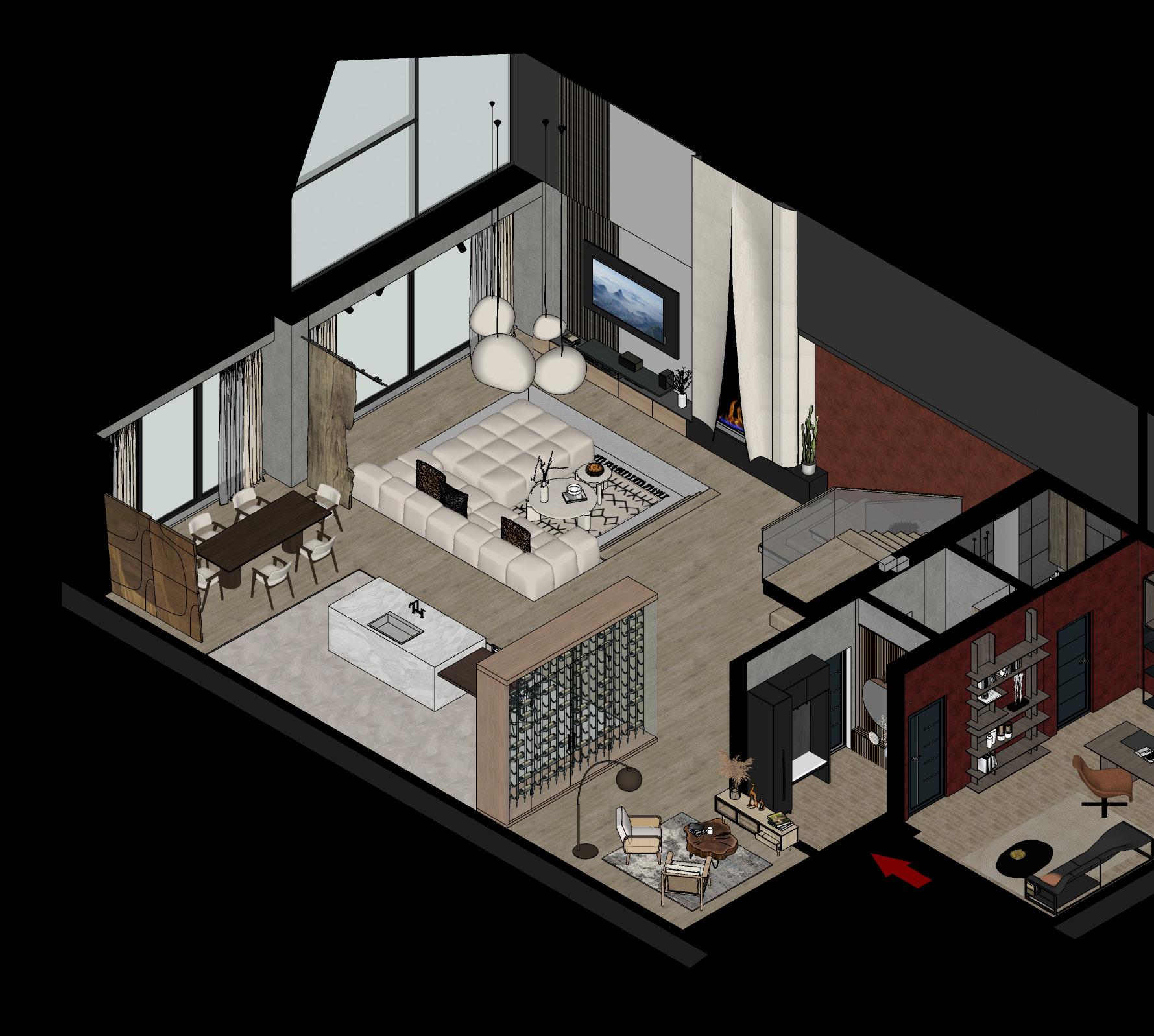 The Day Zone unfolds as a multifaceted masterpiece, featuring two studios/offices that epitomize mo-dern productivity while maintaining a serene ambiance. The open space kitchen, intricately connected to the living room, becomes the heart of the home, fostering a sense of togetherness. The design philosophy is elevated by the inclusion of iconDecember, 2022. Single Family House