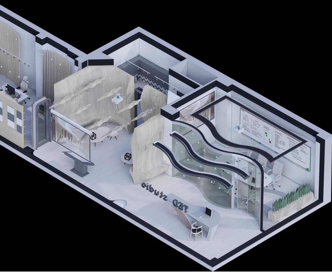 Situated in a bustling urban context, the TED Studio’s project transcends traditional boundaries, inviting inhabitants into a space where parametric design not only shapes physical structures but also crafts an immersive experience that is both awe-inspiring and functional.