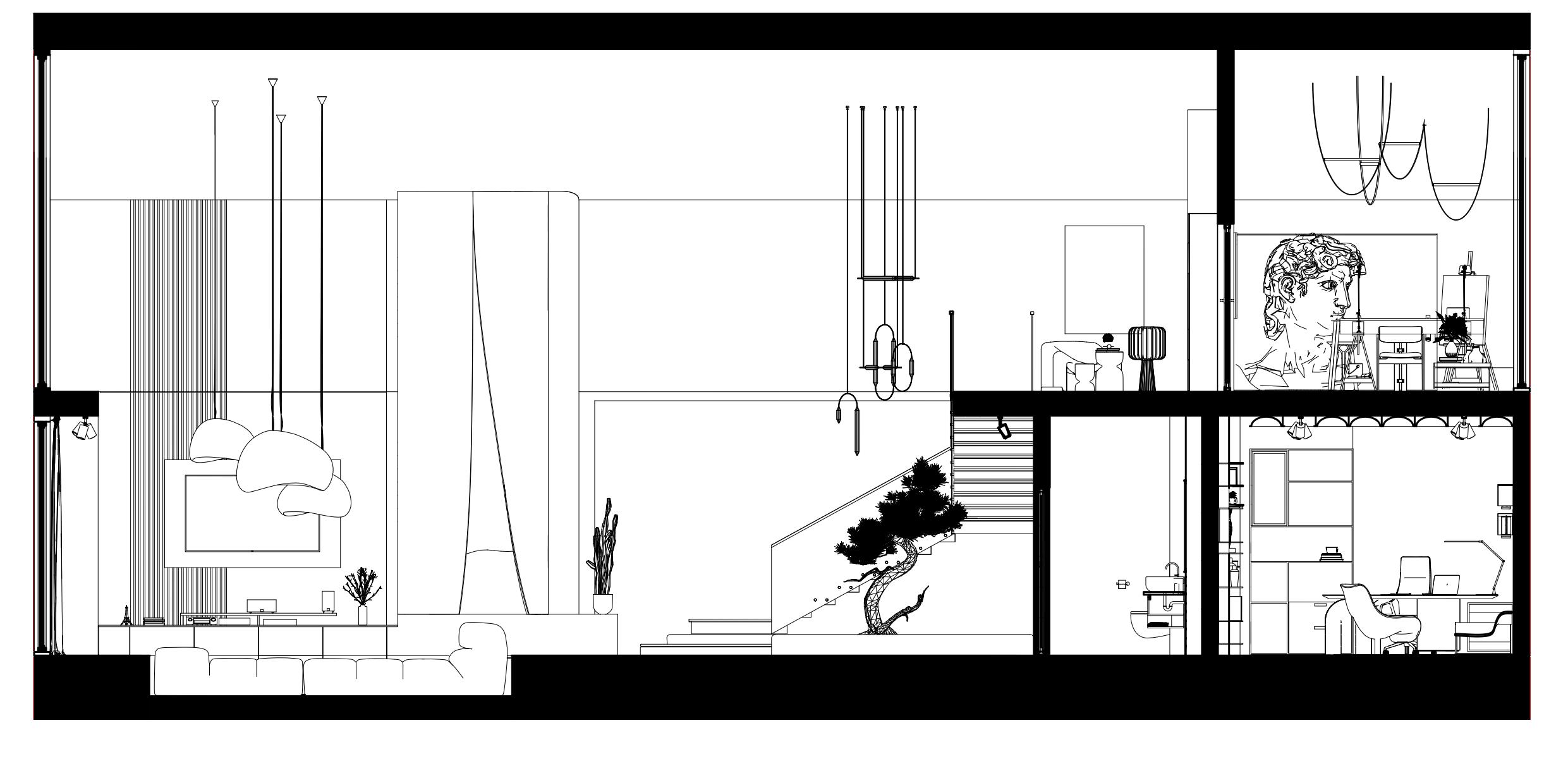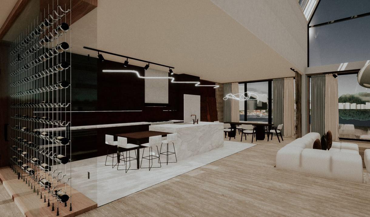 The concept of the residence revolves around creating a sanctuary where iconic elements seamlessly weave into the daily fabric of life. The staircase to the upstairs office becomes a compelling architectural feature, guiding inhabitants with grace and flair.