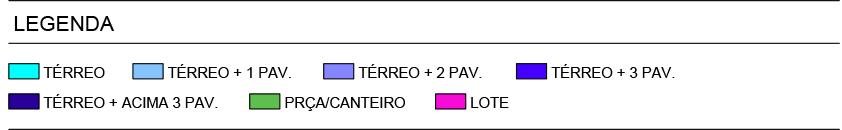 O gabarito de altura da área é relativamente baixo, visto que a massa de edificações por sua maioria é de térreo mais um pavimento.