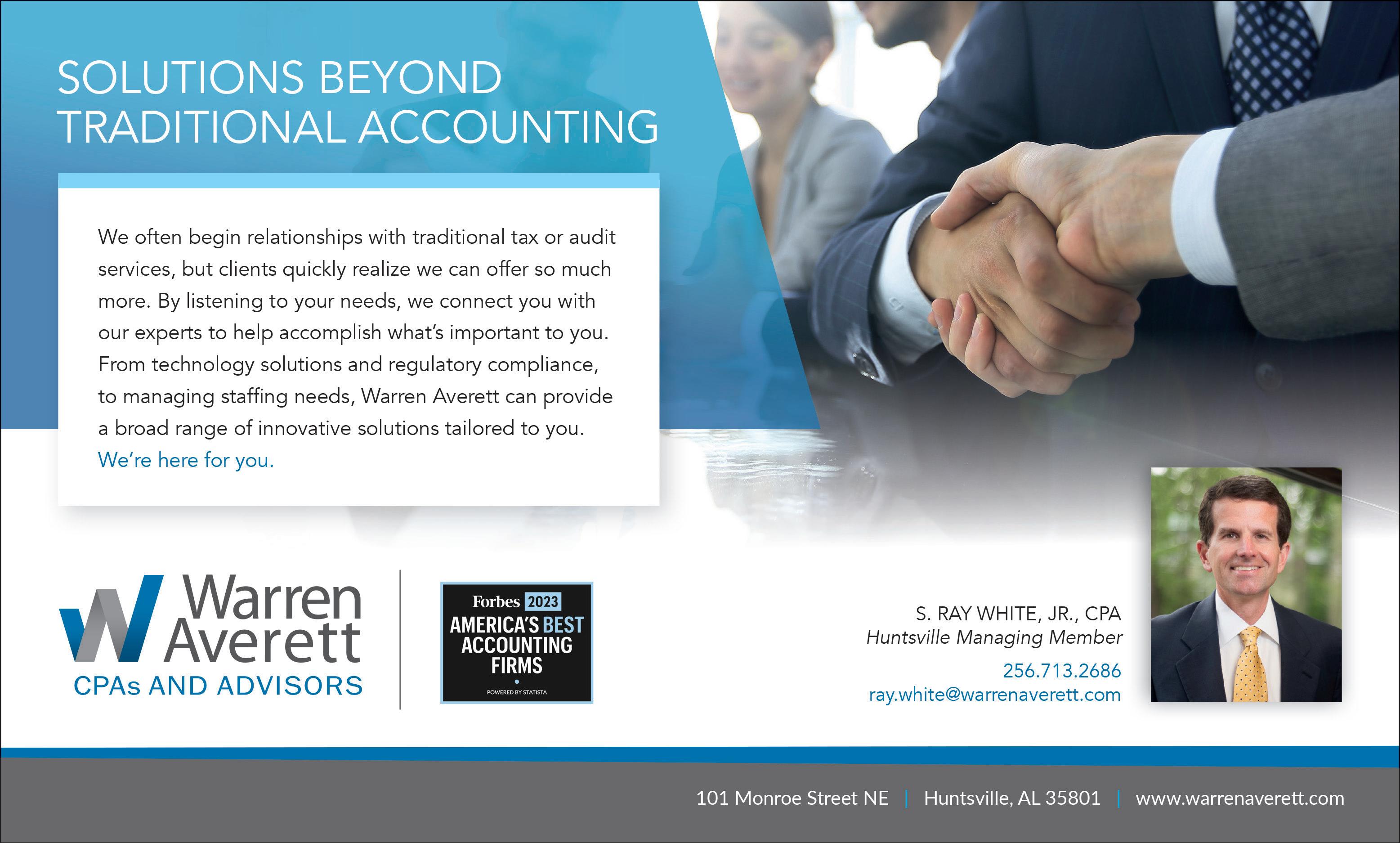 ALL CONTENTS ©2023. ALL RIGHTS RESERVED. REPRODUCTION OR USE IN WHOLE OR IN PART OF THE CONTENTS WITHOUT THE PRIOR WRITTEN PERMISSION OF THE PUBLISHER IS PROHIBITED. HUNTSVILLE BUSINESS JOURNAL IS A REGISTERED TRADEMARK OF EVENT PUBLISHING. ALL RIGHTS RESERVED. UNSOLICITED PHOTOGRAPHS OR ARTICLES ARE SUBMITTED AT THE RISK OF THE PHOTOGRAPHER OR AUTHOR. EVENT PUBLISHING ASSUMES NO LIABILITY FOR THE RETURN OF ANY UNSOLICITED MATERIALS AND MAY USE THEM AT ITS DISCRETION.