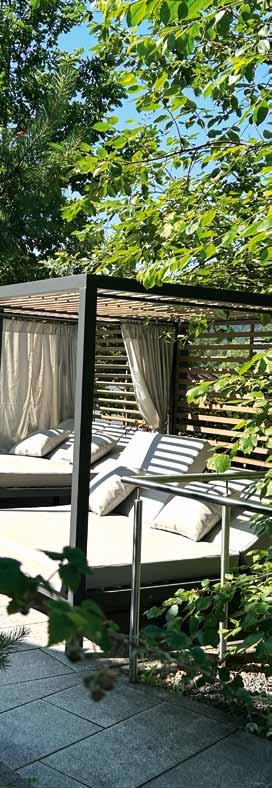 Sonnendeck mit Hängesesseln & Schwebeliegen