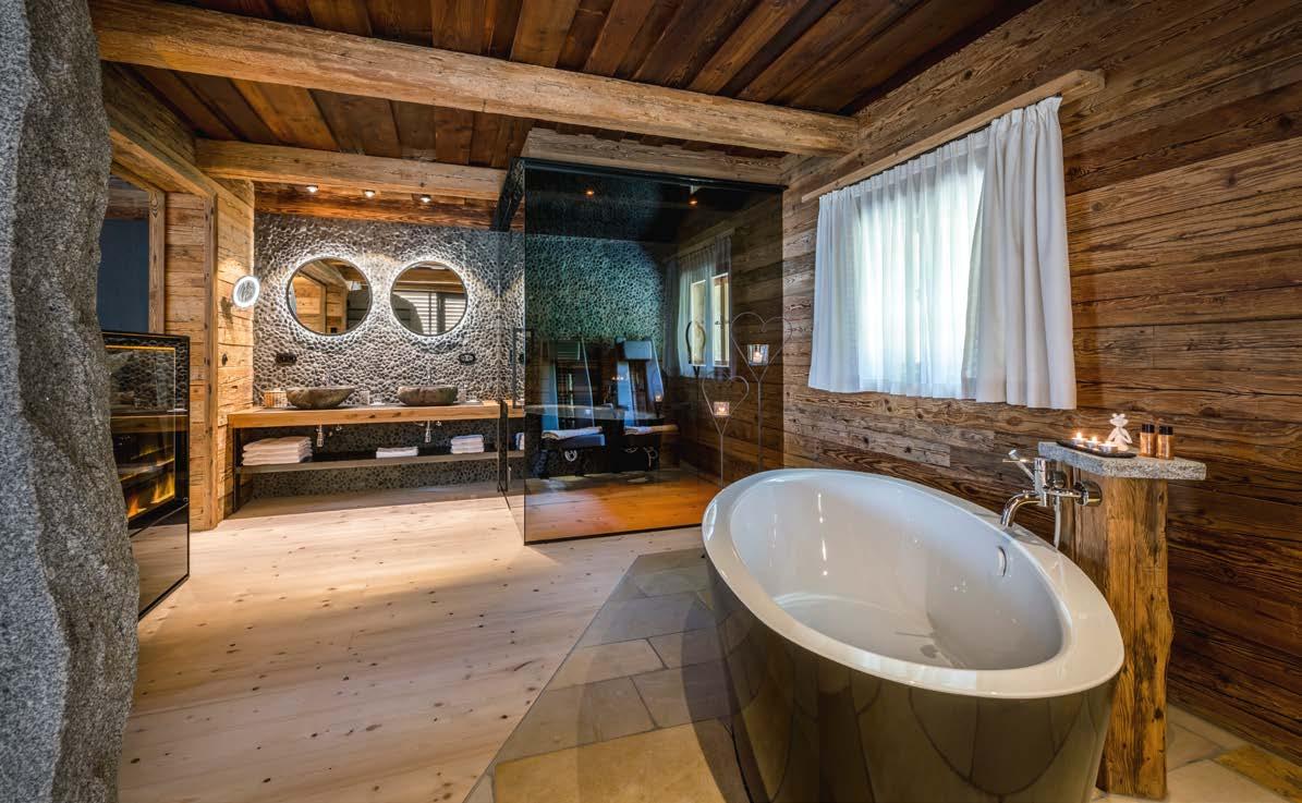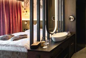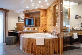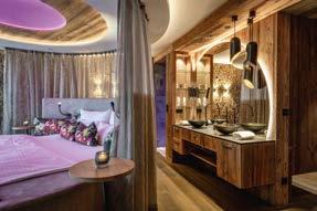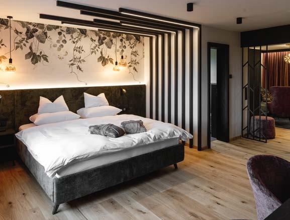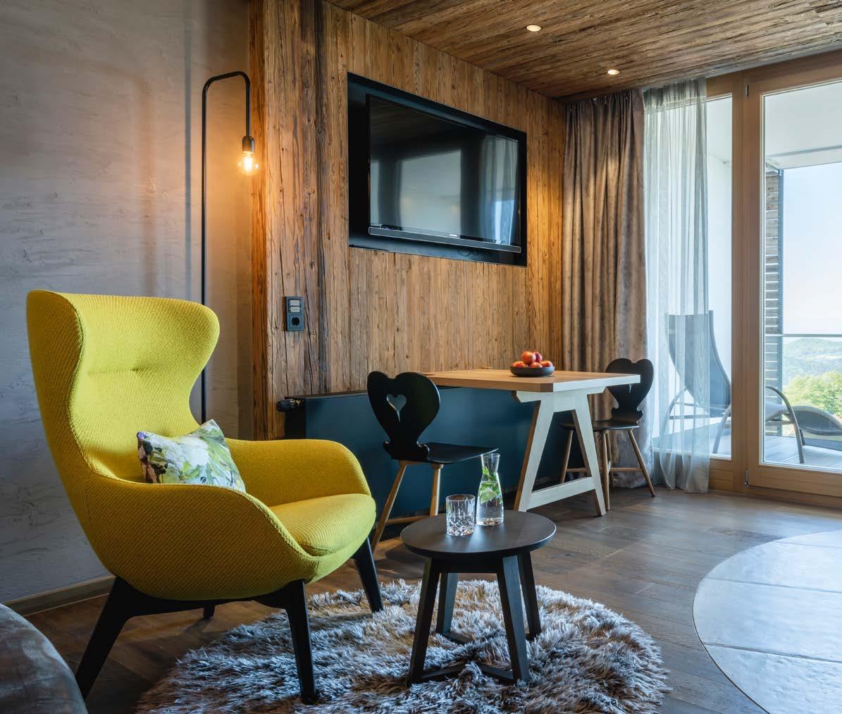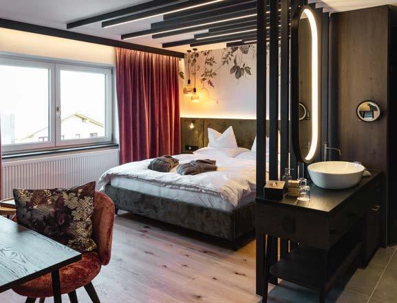 Das große Kuschelbett (180 x 200cm) und die stylische Sitzecke sorgen für ein gemütliches Ambiente. Das offene Bad rundet das großzügige Design dieses Wohlfühlzimmers ab. Auf der Loggia genießen Sie frische Bergluft. ab € 200,- pro Person / Nacht