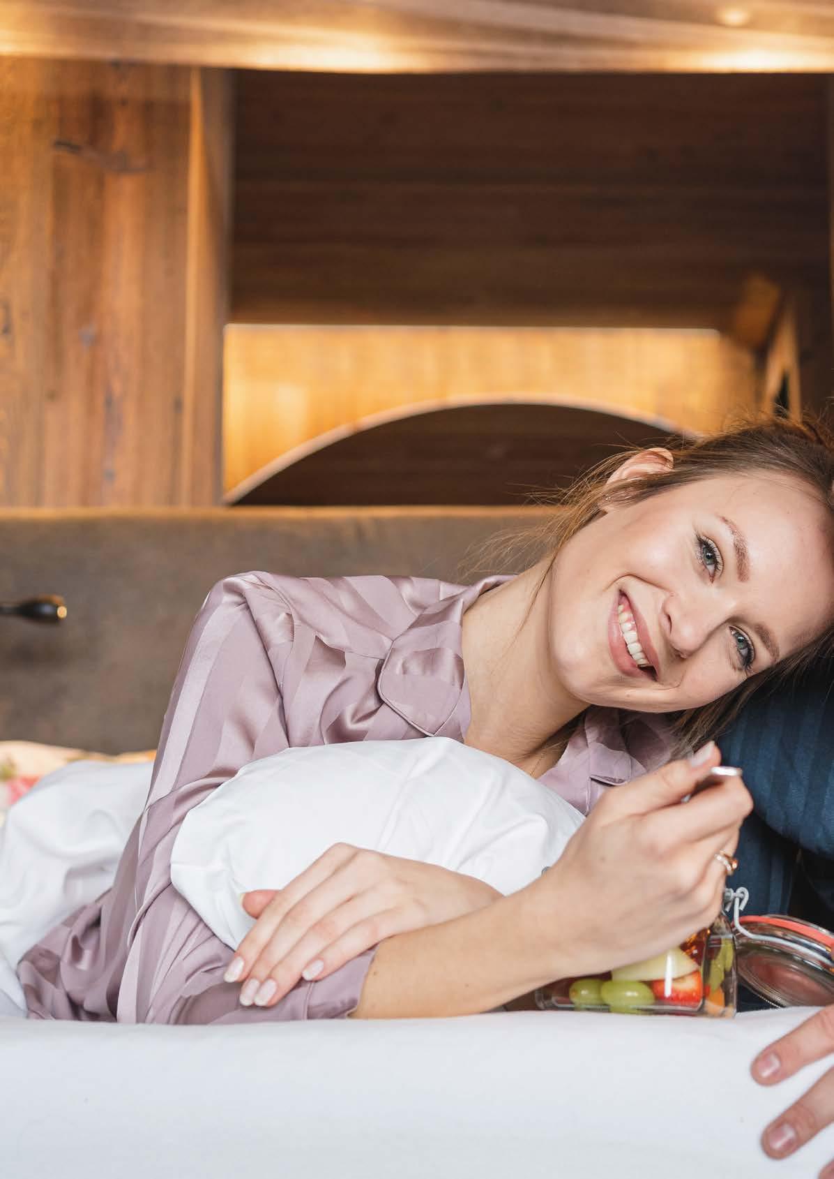 Wir laden Sie in unseren liebevoll gestalteten und luxuriös ausgestatteten Zimmern zu einer Auszeit ein: Atmen Sie gemeinsam tief durch und genießen Sie wertvolle Kuschelmomente.