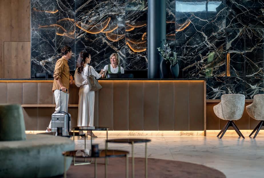 An der Rezeption heißen die Mitarbeiter die Gäste willkommen – aufmerksam, persönlich und herzlich.