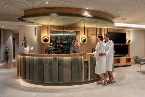 Nach einer intensiven Zeit der Erneuerung zeigt sich der Mooshof in neuem Glanz. Moderner, heller und trotzdem vertraut. Die neue Eingangshalle mit Rezeption und Lobby heißt Gäste stilvoll willkommen. Neue Bereiche und viele liebevoll gestaltete Details spiegeln unsere Freude an Gastlichkeit wider.
