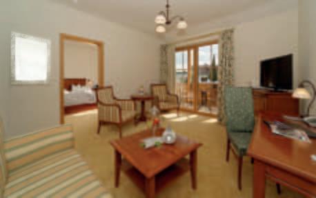 Komfortable Doppelzimmer mit Wohnecke und Vorraum mit Garderobe und Schrank, Minibar, Schreibtisch, Flach-TV, Durchwahltelefon, Radio, Dusche/WC, Föhn, Hotelsafe, Balkon, kuscheliger Leihbademantel, Badetasche mit Saunatüchern und Badeschuhen kostenfreier Autostellplatz am Haus