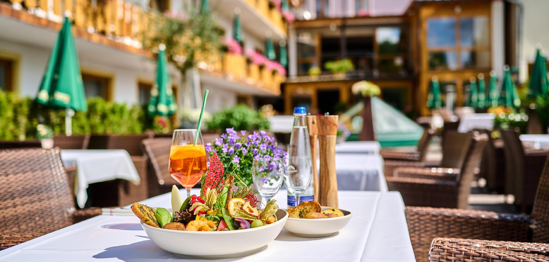 Auf unserem Sonnendeck oder im Restaurant verwöhnt Sie unsere Küchencrew mit hervorragend zubereiteten Schmankerln: Immer Montags, Mittwochs und Freitags gibt’s kulinarisches vom Buffet. Jedesmal verschiedene Themen – immer frisch und lecker. Den Rest der Woche haben Sie bei der Menüwahl eine Auswahl an drei verschiedenen Hauptgerichten. Dazu bieten wir Ihnen knackigen Salat vom Buffet.