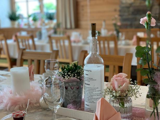 Auf Wunsch gestalten wir Ihnen gerne auch Menükarten, welche im Anschluss mitgenommen werden können. Kosten pro Menükarte: 2,50€
