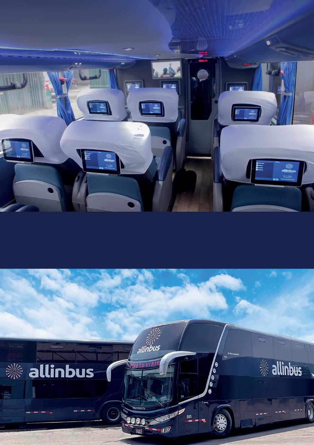 979 705 534 www.allinbus.com DIVERSIÓN A BORDO PANTALLAS TÁCTILES EN TODO EL BUS LIMA, TRUJILLO, CHIMBOTE, HUARAZ, CHEPÉN, CHICLAYO, LAMBAYEQUE, PIURA, SULLANA DESTINOS DESTINOS