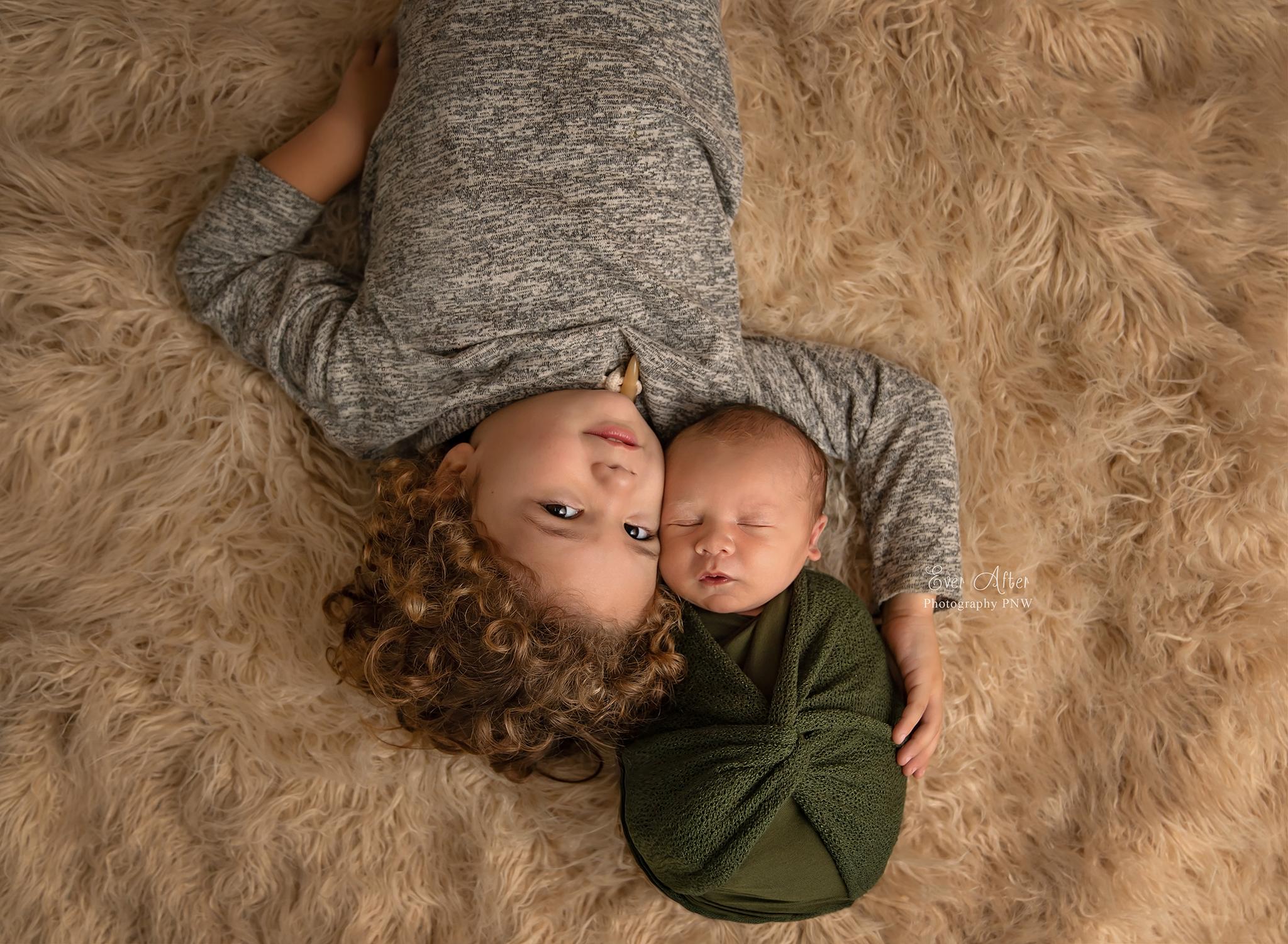 For newborn sessions with siblings, we start by photographing the family and siblings first. This helps capture those special moments while little ones are fresh and more cooperative. After the family and siblings are done, we focus on settling the newborn and photographing the baby alone.