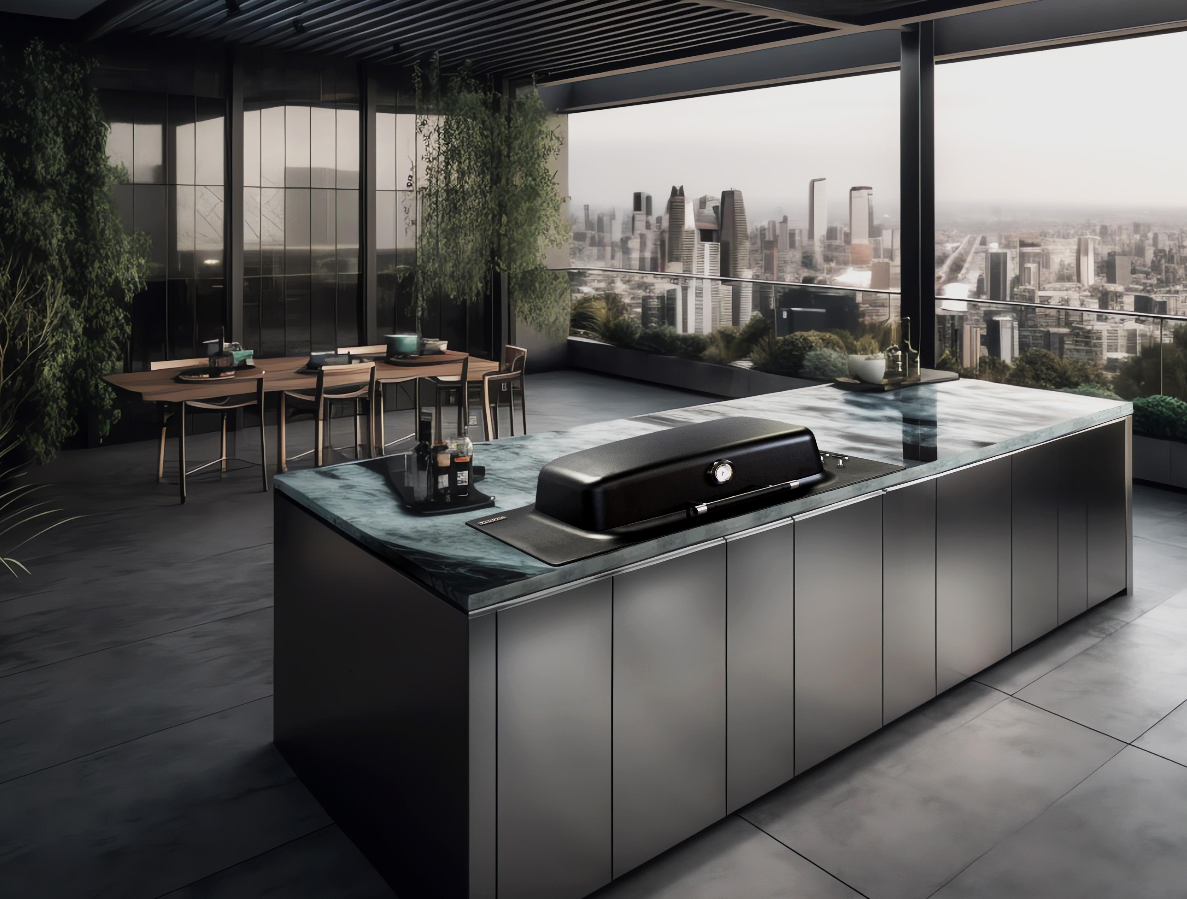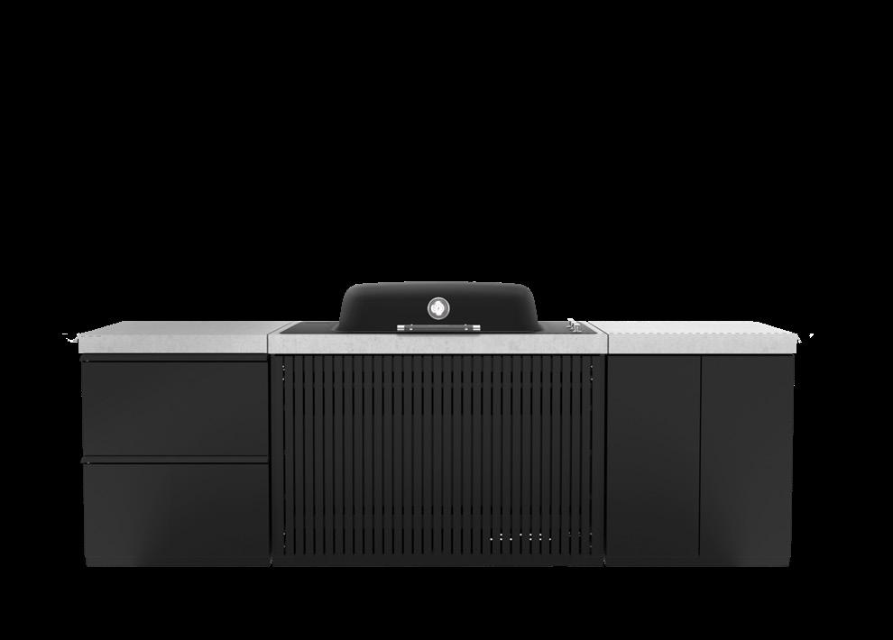 Built for style and strength, the Everdure Seabreeze Outdoor Kitchen Modules are constructed from marine grade aluminium to withstand the elements while maintaining its sleek design. Designed for effortless assembly, it adapts to your space and entertaining needs. Configure it as an island or position it against a wall with the included panels for a seamless and polished look. Available in wood-effect or matte black finishes, its aluminium panels pair beautifully with the sinter stone benchtops. Built-in castors offer easy repositioning, while levelling feet ensure a stable foundation.
