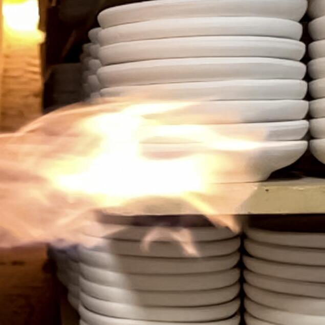 Durch das erste Brennen, den Schrühbrand, erhält die Reibe die benötigte Härte für die Weiterverarbeitung.