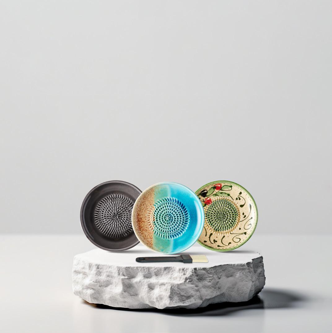 Auch durch unsere kreativen Techniken und reaktiven Glasuren wird jede evergrate ®-Keramikreibe zu einem Einzelstück.