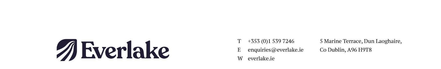 5 Marine Terrace, Dun Laoghaire, Co. Dublin, A96 H9T8 +353 1 539 7246 enquiries@everlake.ie everlake.ie