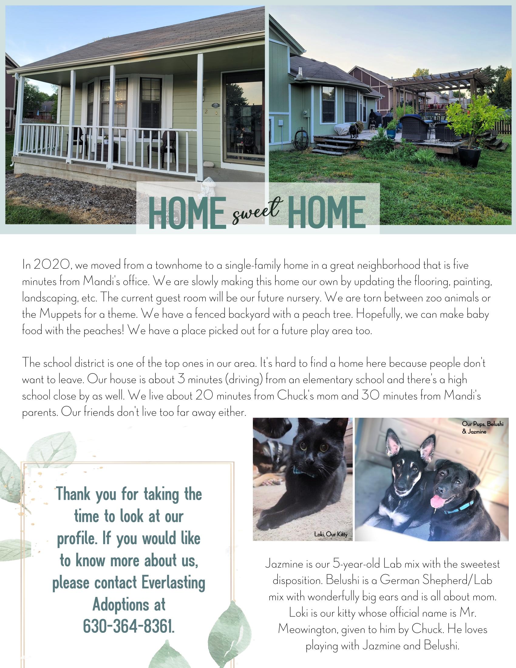 "Thank you so much for taking the time to review our profile and giving us the opportunity to share details about our lives with you. We are Chuck and Mandi. After many struggles with growing our family, we continue to hope and pray that we will be blessed with this amazing gift of parenthood through adoption. Although we will never truly understand having to make this difficult decision, we admire you and appreciate your willingness to consider the idea of adoption for you and your precious baby. Chuck is adopted, so we decided that no matter what other paths worked for us growing our family, we definitely wanted adoption to be one of them. We can only imagine the thoughts and emotions you're working through and hope that you find the comfort and support you need at this time. We look forward to showing a child the meaning of family, working hard, enjoying life and more." www.everlastingadoptions.com
