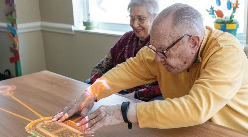 EverTrue was the first in the region to bring Tovertafel to all EverTrue Midwest Life Plan Communities. Tovertafel, which means “magic table” in Dutch, uses light projections to create an interactive experience where participants engage in individual or multi-player games. Research has shown that interacting with Tovertafel increases positive emotions in people living with dementia.