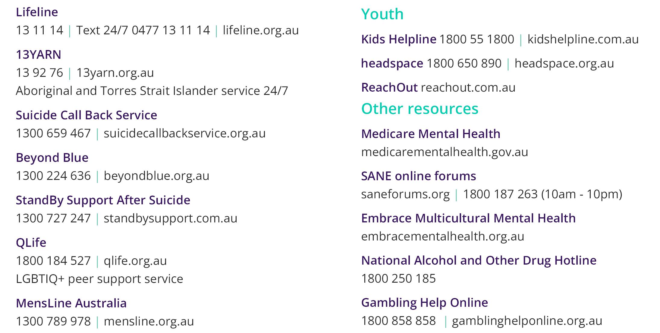 • Media and others communicating publicly about this data are reminded to be responsible and accurate. Resources to support reporting and other communication are available at mindframe.org.au/suicide and mindframe.org.au/our-wordsmatter-guidelines-for-language-use