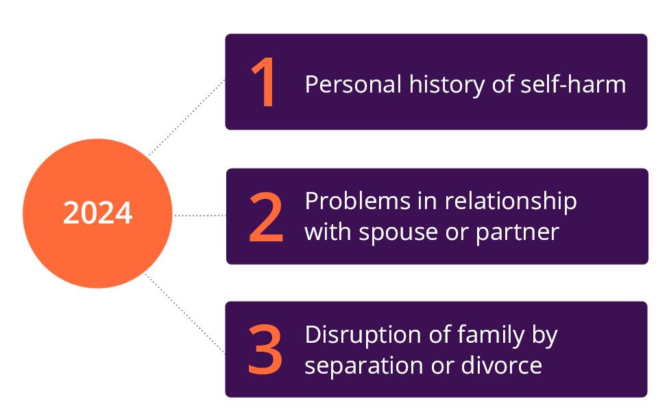 • In 2024, people who died by suicide had an average of four factors mentioned.