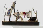 Artist statement excerpt: During this project, I merged my art with the frames in which it is displayed. I began to cast my frames from paper to integrate them more fully. Some of the art is cast as part of the frame, while other works are inserted into the frames in the form of collages. My subject matter has many influences and is generally whimsical and macabre.