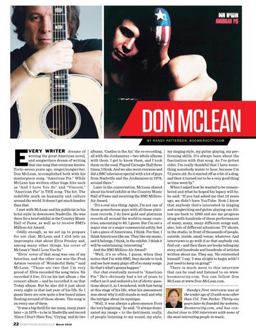 DON MCLEAN B Y R A N DY PAT T E R S O N , B O O M E R O C I T Y. C O M