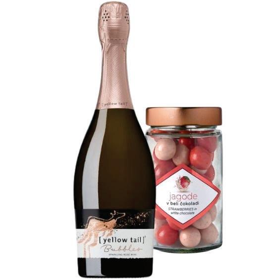 Jagode v beli čokoladi & Bubbles Rose, Yellow tail
