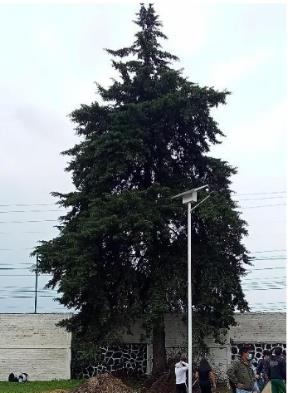 La consideramos una zona de riesgo, pues al ser un árbol tan grande y no encontrarse en una superficie totalmente plana, en caso de que se cayera generaría diversos daños tomando en cuenta todo lo que tiene a su alrededor, al estar cerca de los cables de luz podría causar un corto circuito que puede derivar en muchos más accidentes.