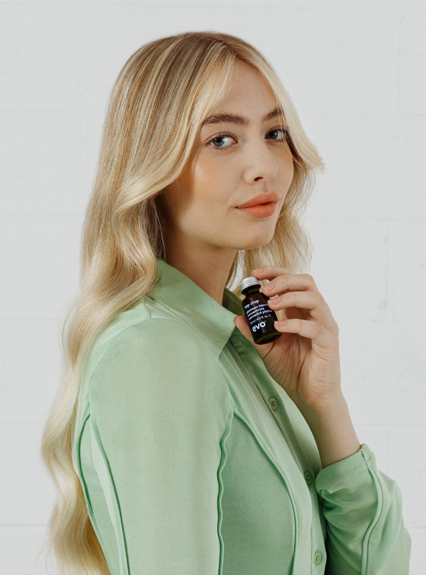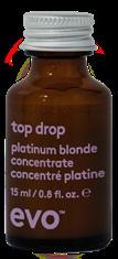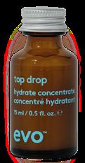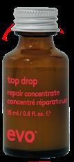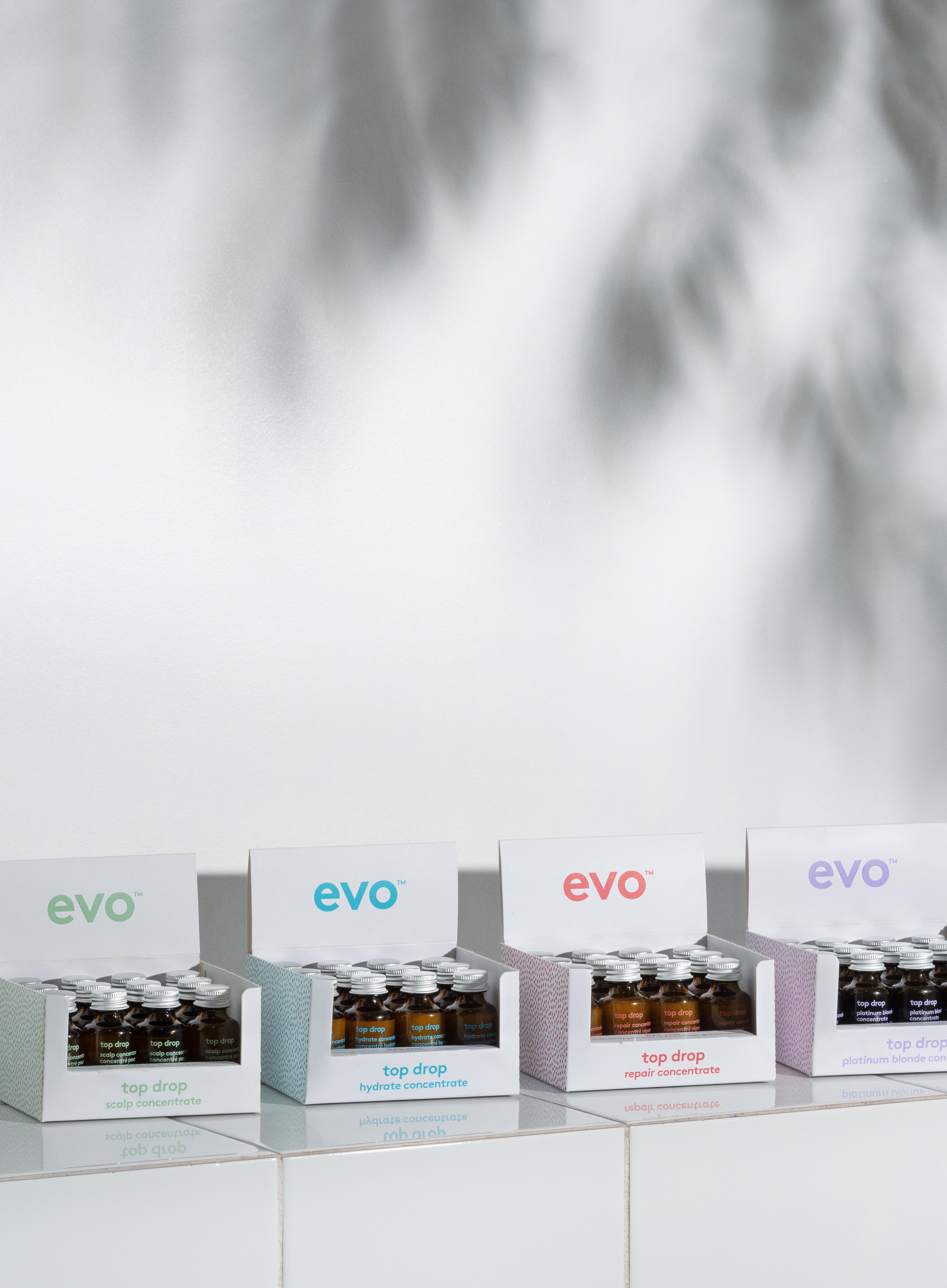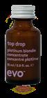 top drop is evo’s new range of professional in-salon treatments, available in hydrate, repair, platinum blonde and scalp that dish up instant hair gratification quickly, simply and effectively while respecting people and the planet.