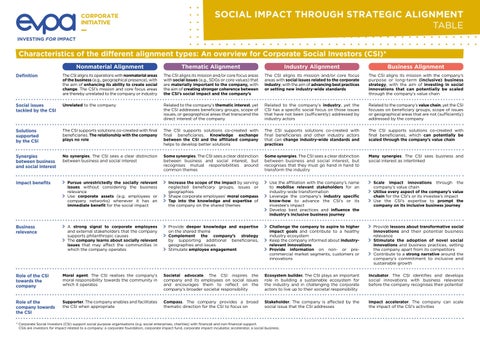 SOCIAL IMPACT THROUGH STRATEGIC ALIGNMENT TABLE Characteristics of the different alignment types: An overview for Corporate Social Investors (CSI)* Nonmaterial Alignment
