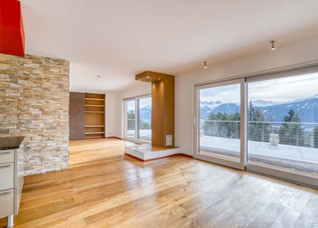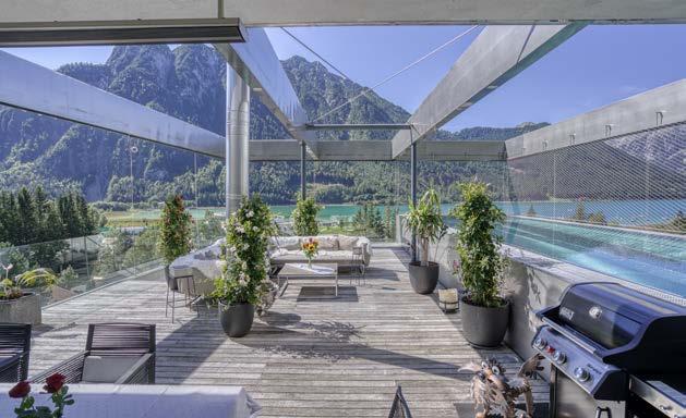 Eines der vielen Highlights des Hauses ist der atemberaubende Wohnbereich im Loftstil und der spektakuläre Blick auf die umliegende Bergwelt | Energiedaten HWB 53 / fGEE 0,56, 4 Schlafzimmer, 4 Badezimmer, Wohn-/ Nutzfläche ca. 504 m², Grundstück ca. 719 m², Kaufpreis auf Anfrage
