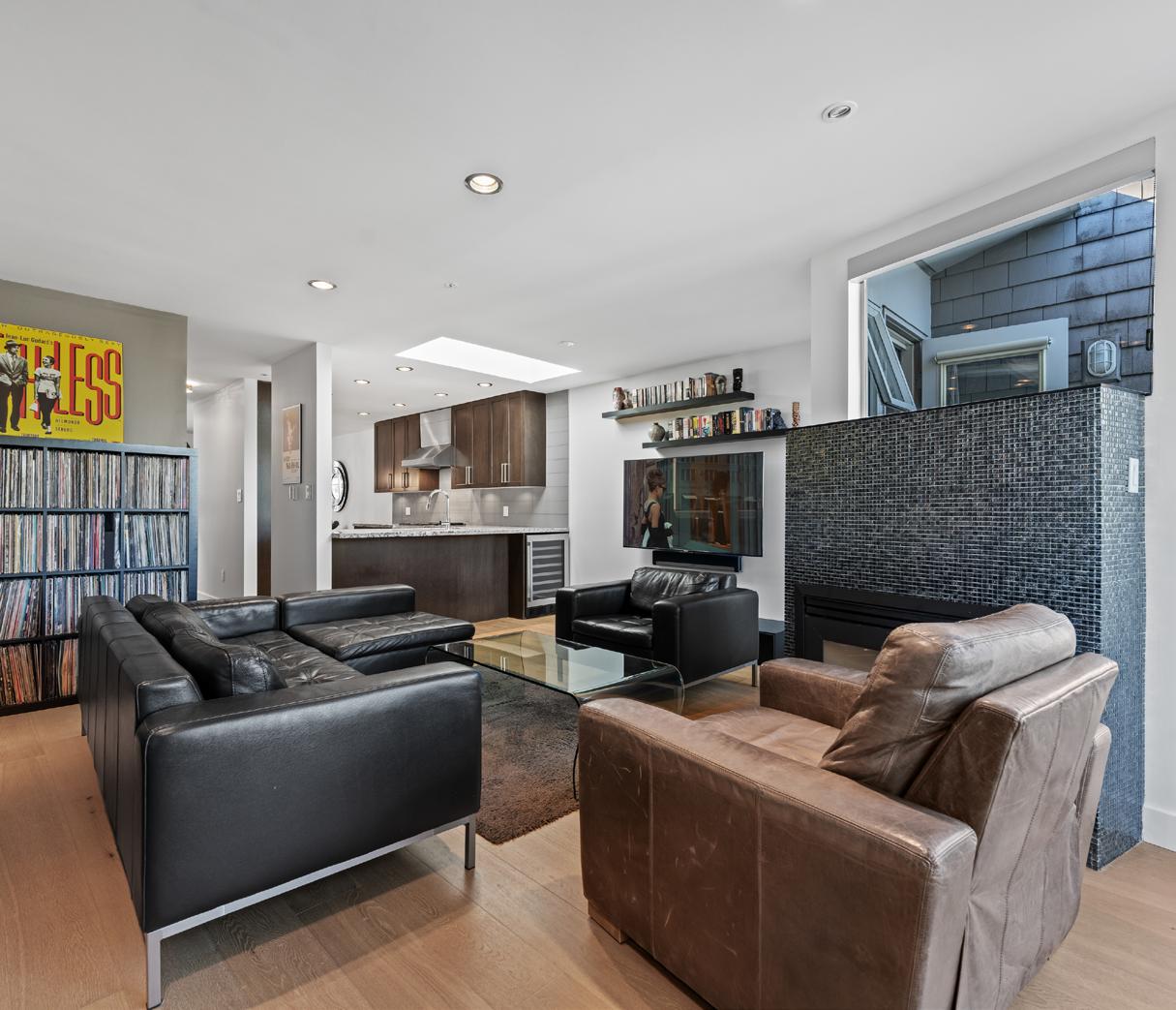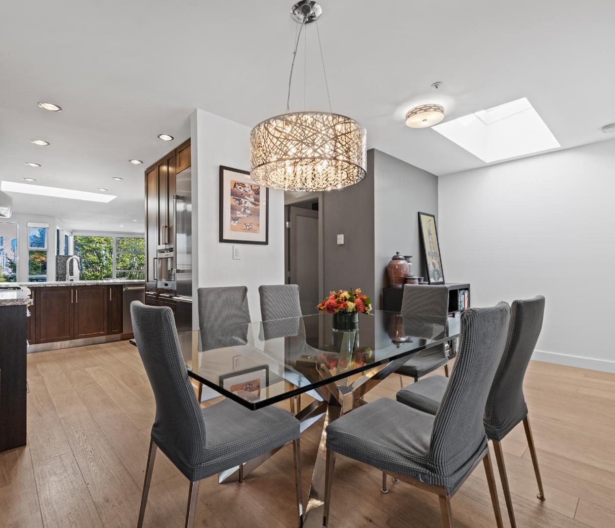 Welcome to 7th Heaven – a rare top-floor, two-level residence in the heart of Fairview with sweeping city & mountain views. This 3 bed & 2 bath home blends timeless style with everyday comfort in one of Vancouver’s most walkable neighbourhoods. Thoughtful updates include a complete 2013 overhaul with engineered hardwood floors, premium Thermador appliances (including gas stove and built-in espresso machine), redesigned bathrooms, updated lighting, Hunter Douglas blinds and California Closets throughout. The reverse floor plan provides ideal separation, with two bedrooms on the main level and the upper level dedicated to open-concept living, dining, and a flexible third bedroom. From the upper level, enjoy sweeping city and mountain views with seamless indoor-outdoor living. Skylights brighten the space, while the living room offers mountain vistas and a cozy gas fireplace. Three private patios enhance the lifestyle- an expansive south-facing patio for entertaining, a north-facing patio with skyline and mountain views, and a private retreat off the primary bedroom. Two secure parking stalls complete this home, set in a pet- and rental-friendly building. Ideally located, this residence offers quick access to the Seawall, Canada Line, future Broadway Subway, and vibrant Cambie Corridor.