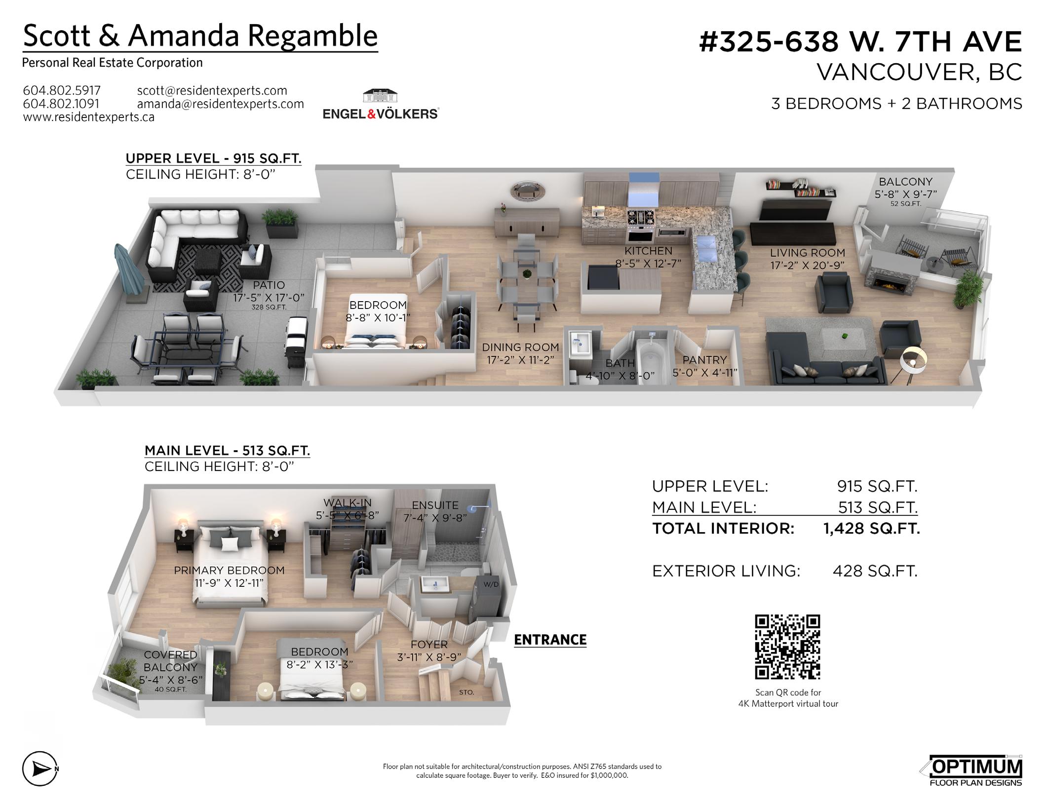 Bedrooms & Bathrooms: 3 Bedrooms 2 Bathrooms 428 sq.ft. Outdoor Living: 2 Parking Stalls