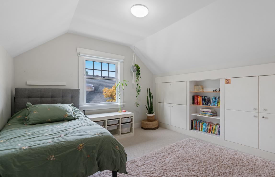 Upstairs, the home offers three generous bedrooms and two full bathrooms, including a serene primary suite. A cozy nook with a skylight on the top-floor landing makes for an inviting reading corner or bedtime story spot. On the lower level, you’ll find a fourth bedroom, a kids’ rec room, a quiet office area, and a large laundry room complete with a sink. There’s also extensive crawl space storage and an oversized garage for all the gear a growing family needs.