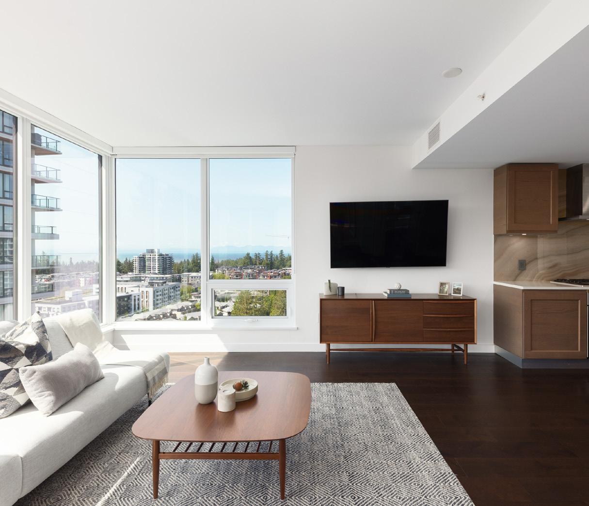 Welcome to Ivy on the Park, an expansive and thoughtfully designed 2-bedroom + den, 2-bath home offering 1,150 sq.ft. of contemporary living in one of UBC’s most peaceful enclaves. Perched above the treetops, this bright, airy residence boasts soaring 8’9” ceilings in the living room, wide-plank hardwood floors, and central air conditioning. Floor-to-ceiling windows frame stunning south and east views of Pacific Spirit Regional Park and the ocean beyond. Step onto your private 106 sq.ft. patio, a tranquil space to enjoy vibrant sunsets and the lush forest canopy. The well-planned layout provides excellent bedroom separation for privacy, with the den offering a versatile option for a home office or creative studio.