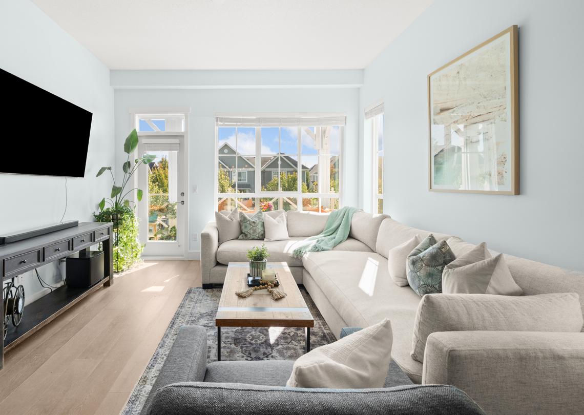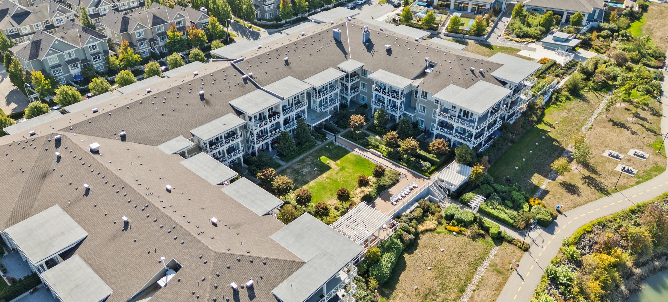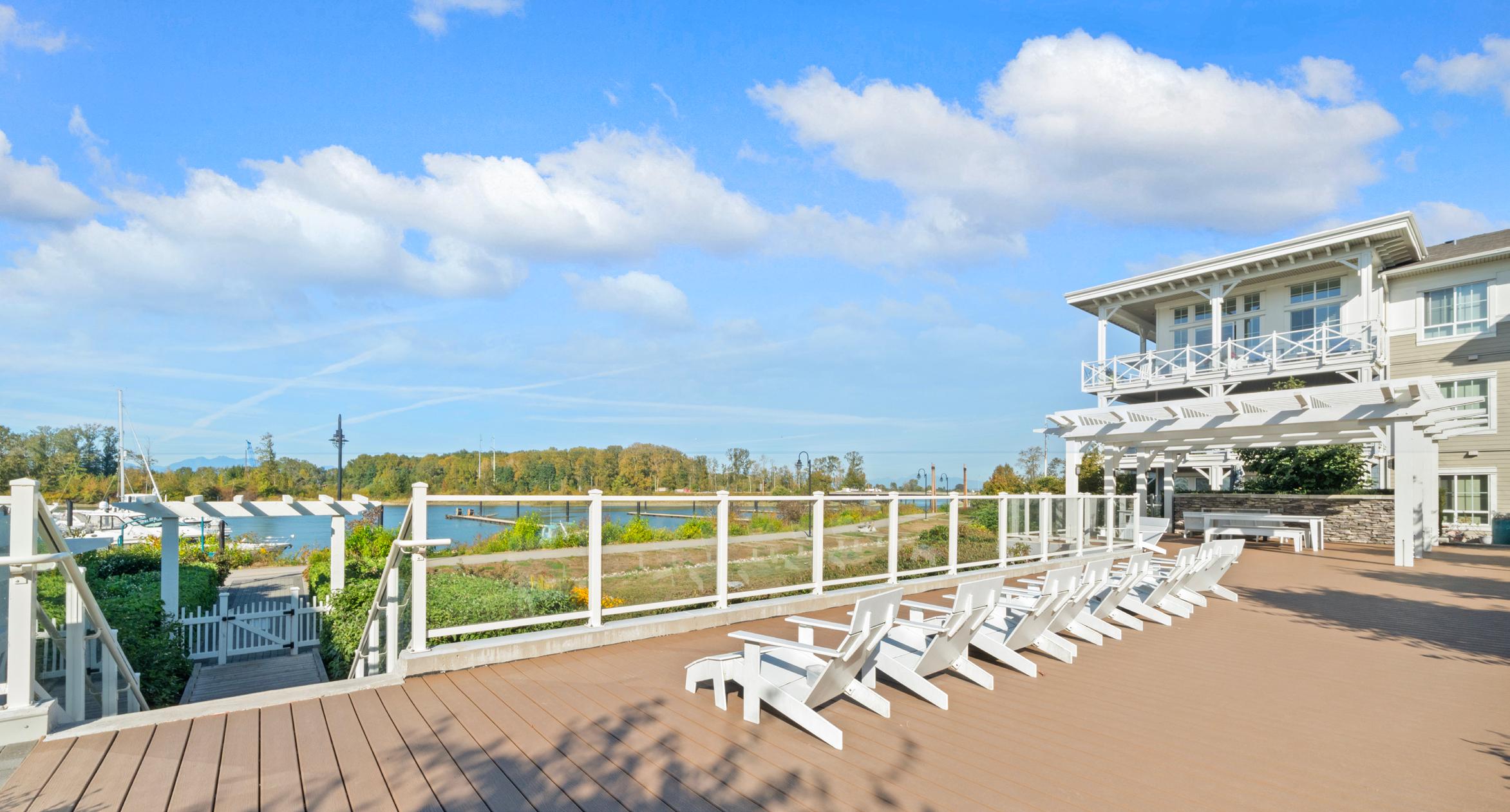Discover unparalleled luxury in Ladner’s premier waterfront enclave, Pilot House. This 2-bedroom, 2-bath, 1,193 sq. ft. residence is an entertainer’s dream, featuring a chef-inspired kitchen, soaring ceilings, and abundant southern light that fills the home each day. The gourmet kitchen anchors the space with stainless steel appliances, premium cabinetry, and an oversized island that flows seamlessly into the expansive living and dining areas, all finished with rich hardwood flooring. The bedrooms are thoughtfully separated at opposite ends, each offering a generous retreat with walk-in closets. The primary suite boasts a spa-like ensuite with a soaker tub, double sinks, and a separate shower. Modern comforts include air conditioning, in-suite laundry, storage, and secured parking. Resort-style amenities elevate daily living with an outdoor pool, hot tub, lounge, guest suites, and a sports court. All just steps from scenic trails, Captain’s Cove Marina, dining, and schools.