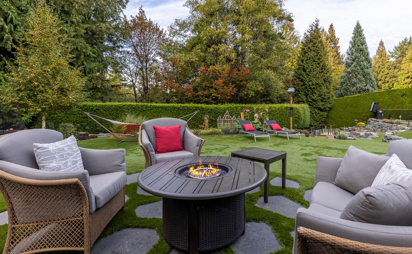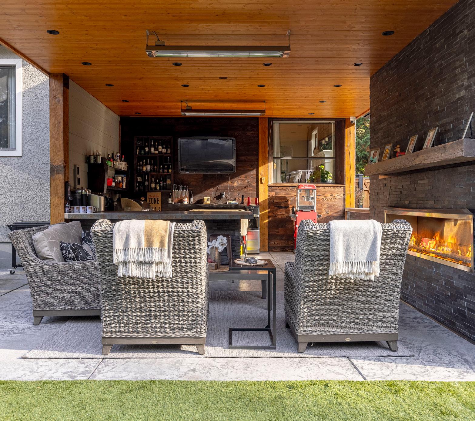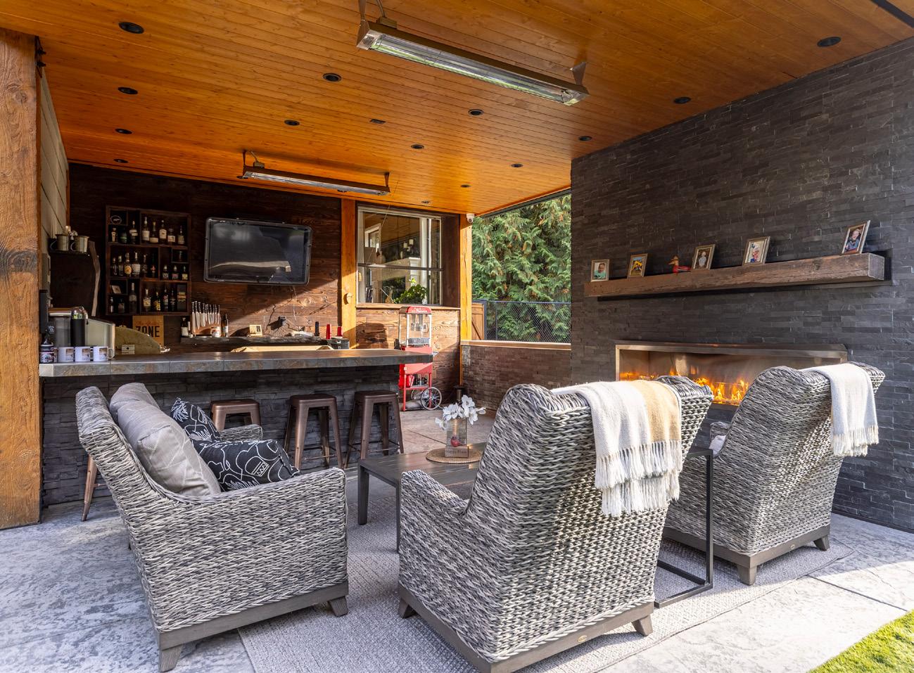• Full yard redevelopment (Rock landscaping, fencing, turf, plants, heated shed, BBQ space with Cactus Club heater, plumbed fire pits and BBQ area)