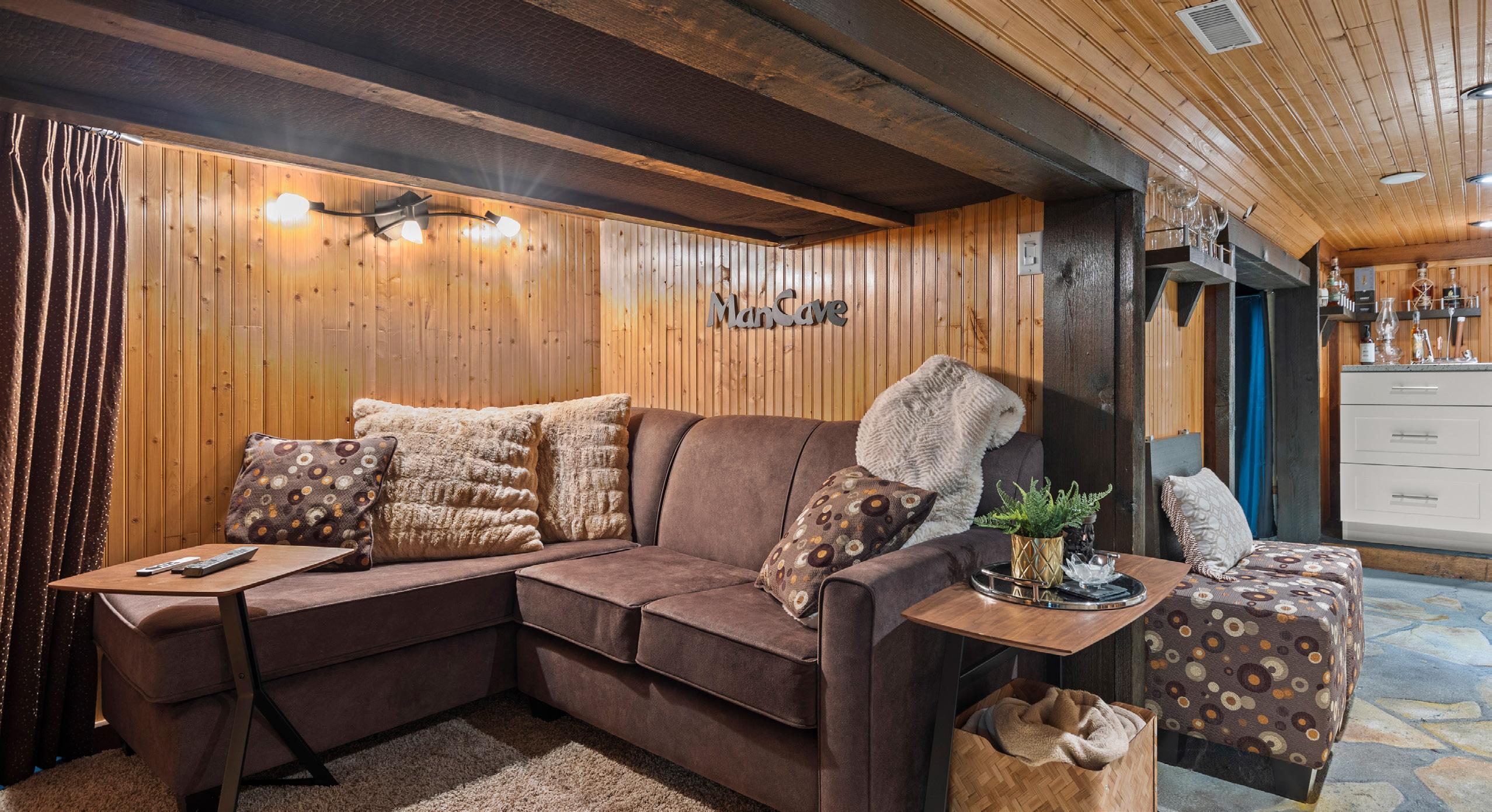 • Insulated/AC-cooled wine cellar and sitting area with rock-path theming