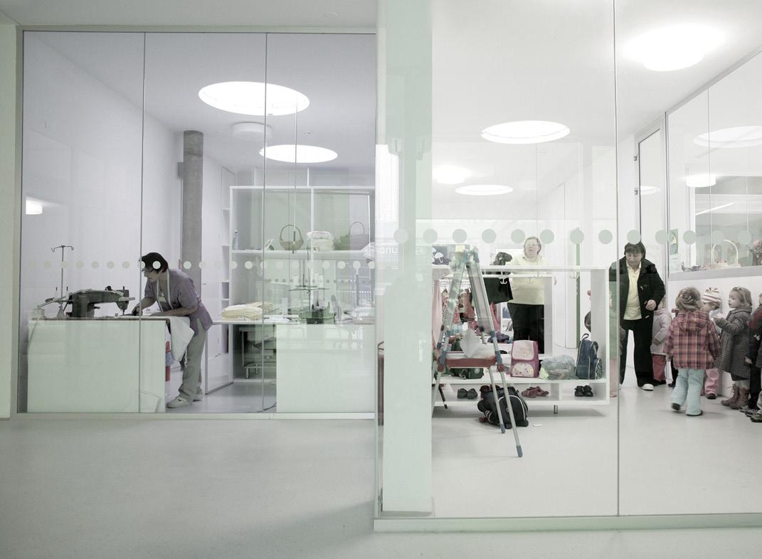 The children and staff premises are completely intertwined. A child can see a woman typing on a computer, the other ones counting money, sewing linen or cooking their meal. Walking down "The Children Street" and seeing all the professions lined up left and right – like an everyday situation in the city. An introduction to the real life.