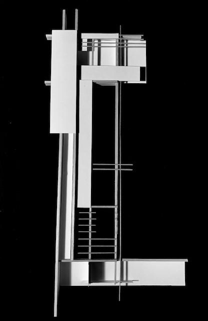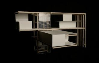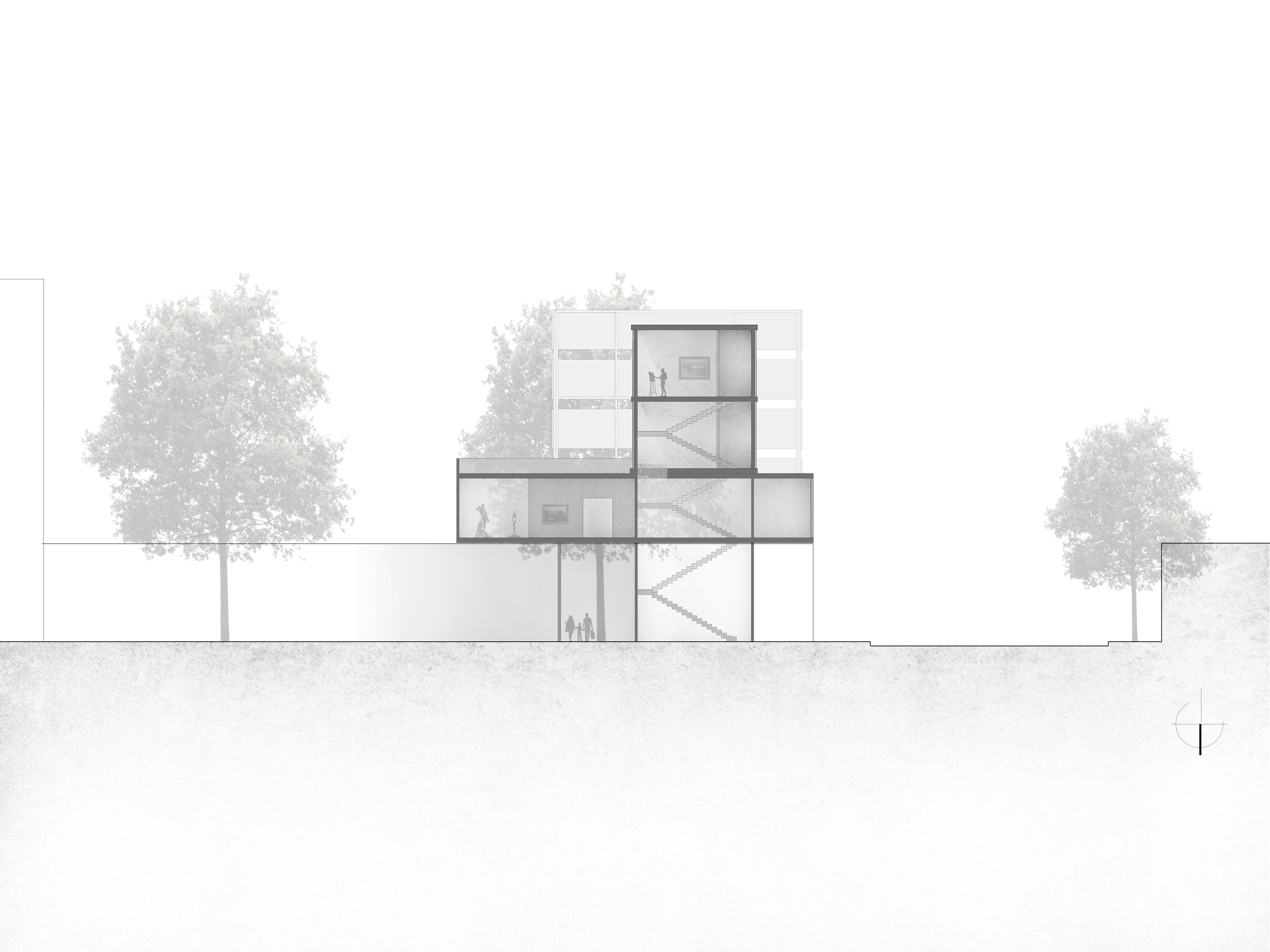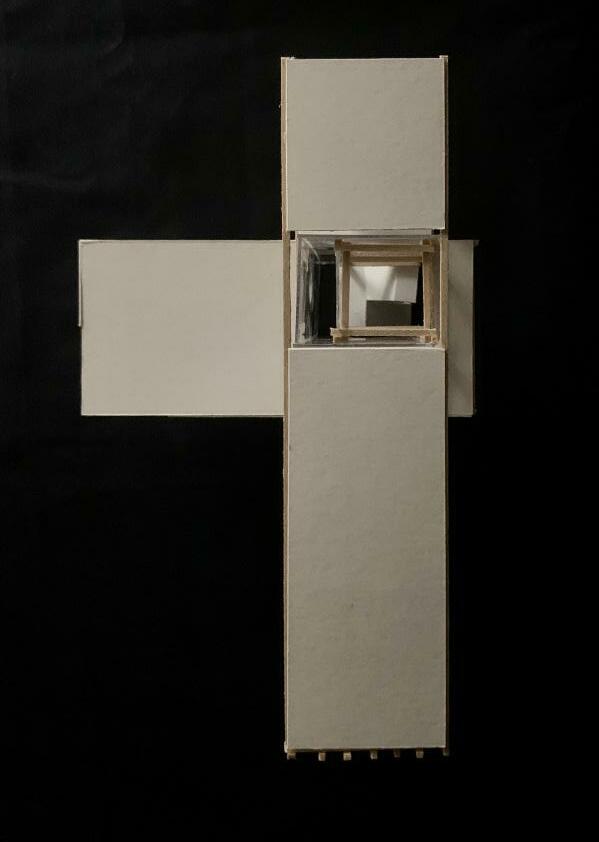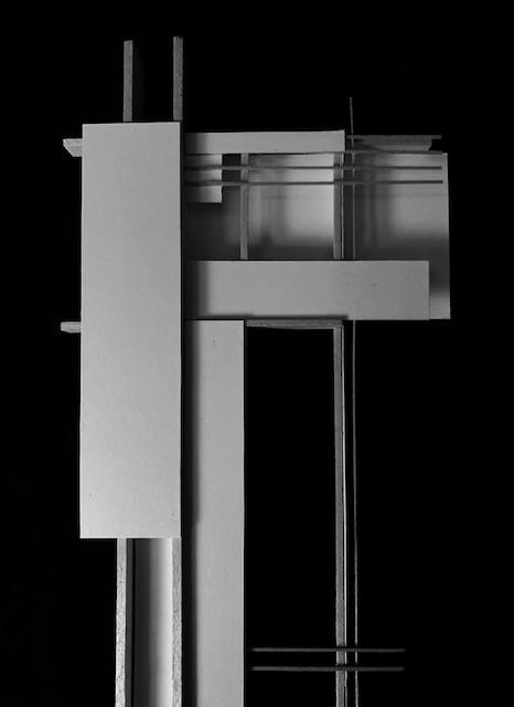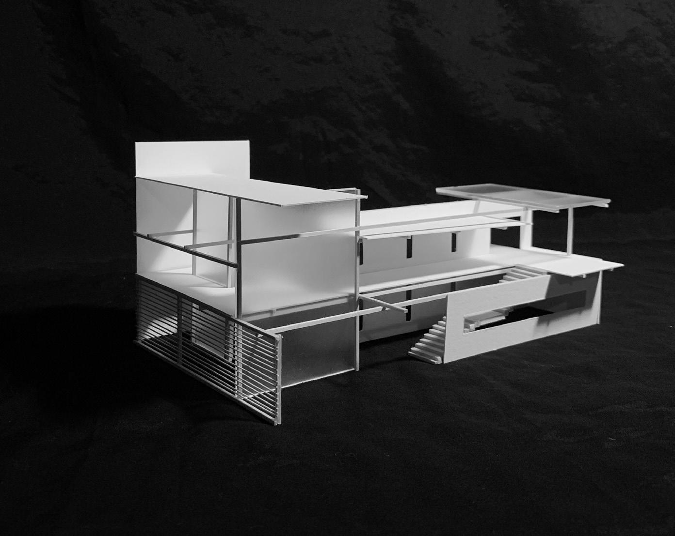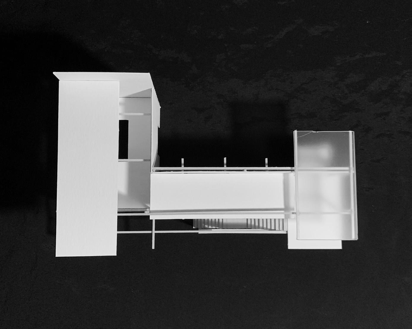 This studio analyzes ideas of the urban context, site, and program on a larger scale than previous studios. This project includes three intersecting masses, one of which holds service spaces of egress stair and elevators that anchors the masses vertically at the interacting axis. The two crossing masses shift past one another in opposite directions, extending out towards the city, and holding the street edge from above. The program consists of an open-floor gallery space for viewing art through a more informal circulation and classrooms and studio spaces for visitors to experience the art firsthand. The ground floor serves as an interactive space between the street and the project. It features a