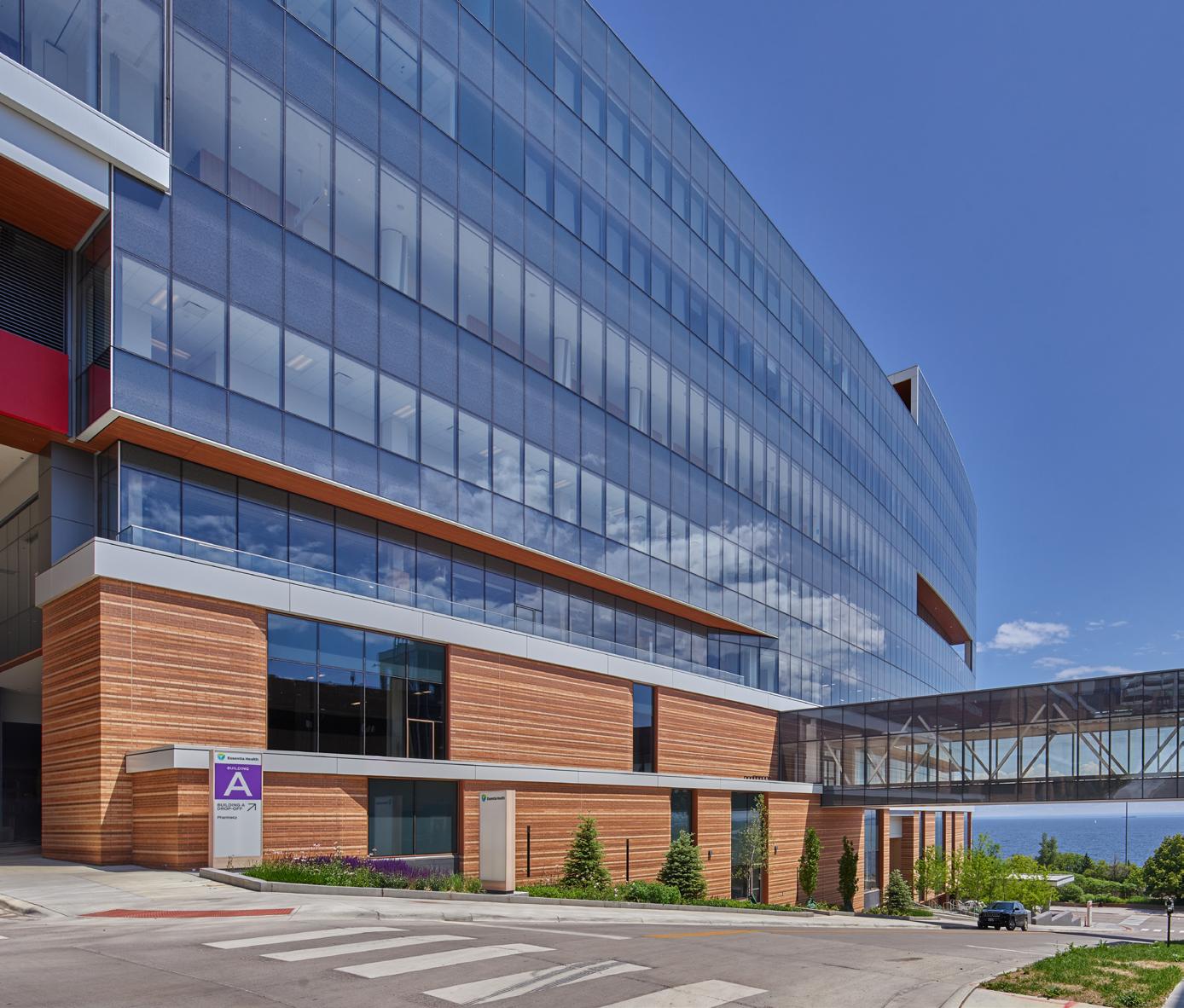 Key to the hospital’s ethos is the connection to the surrounding environment and community. The building’s masonry base and native plant gardens along Superior Street, 2nd Street, and 4th Avenue create a soft edge to the hospital between the main urban thoroughfare and the lake’s edge.