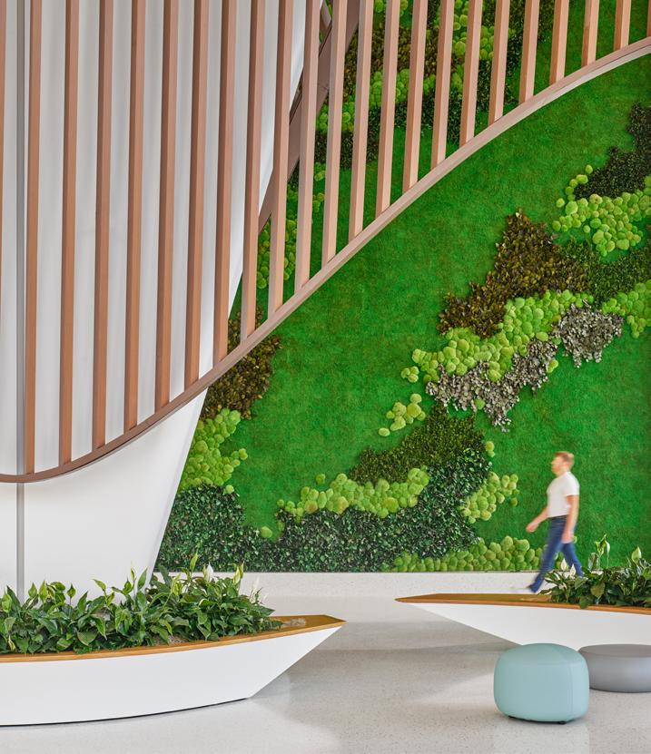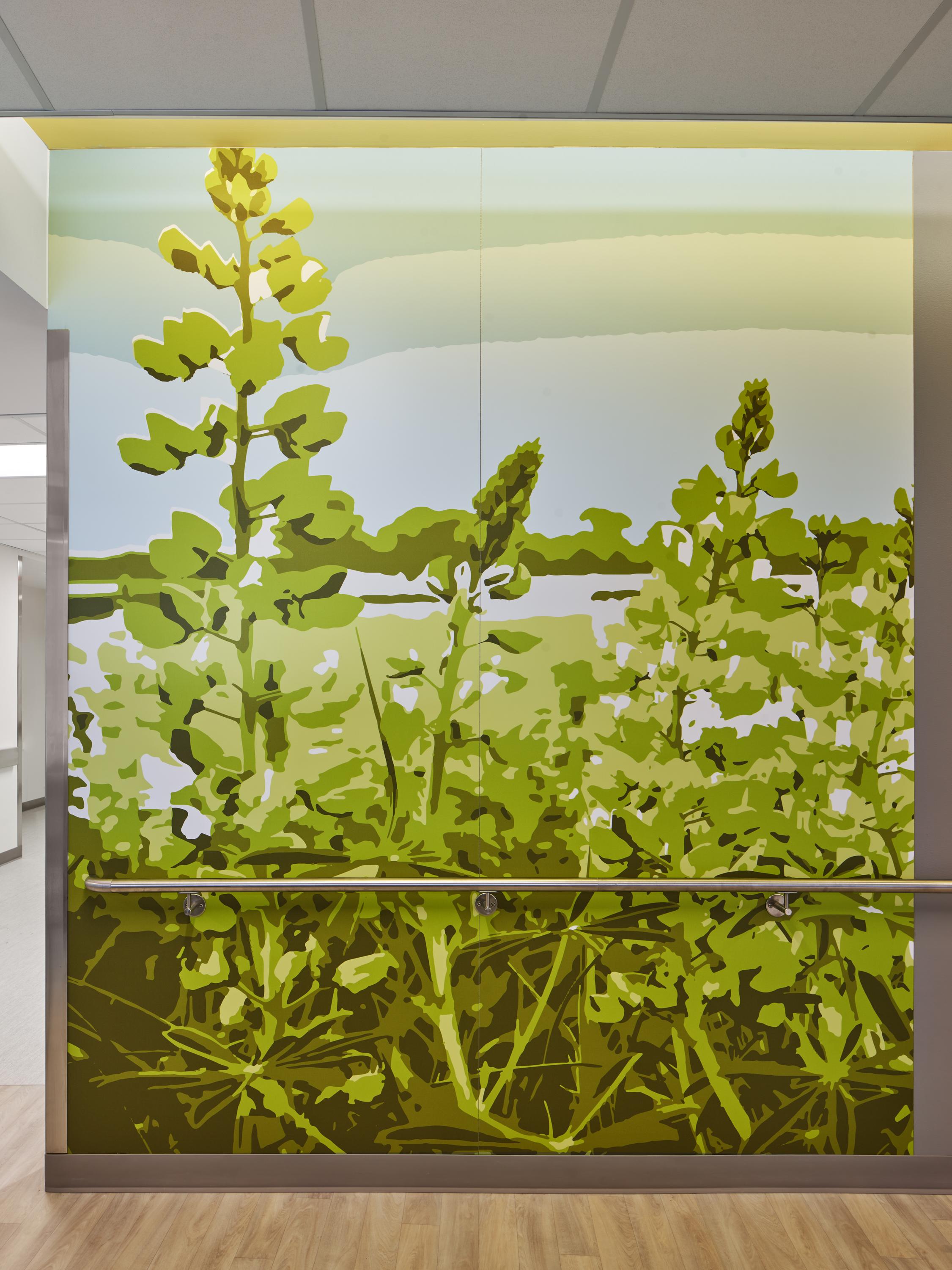 design, creating a seamless flow from floor to floor. The natural imagery also serves as a navigational aid, enhancing the spatial quality of each area of the hospital.
