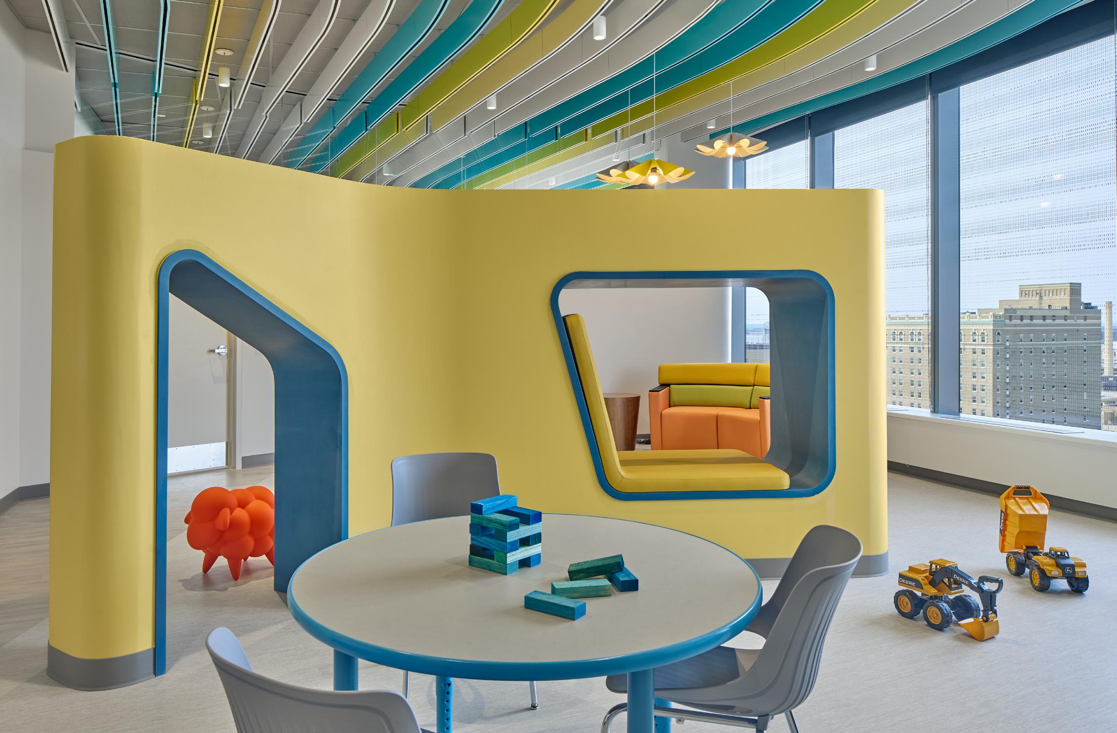 “There are different themes on each floor of the hospital, providing a unique experience no matter what level you’re on,” said Interior Architect Evan Rotenberger. “While some of the themes represent actual landscapes, other
