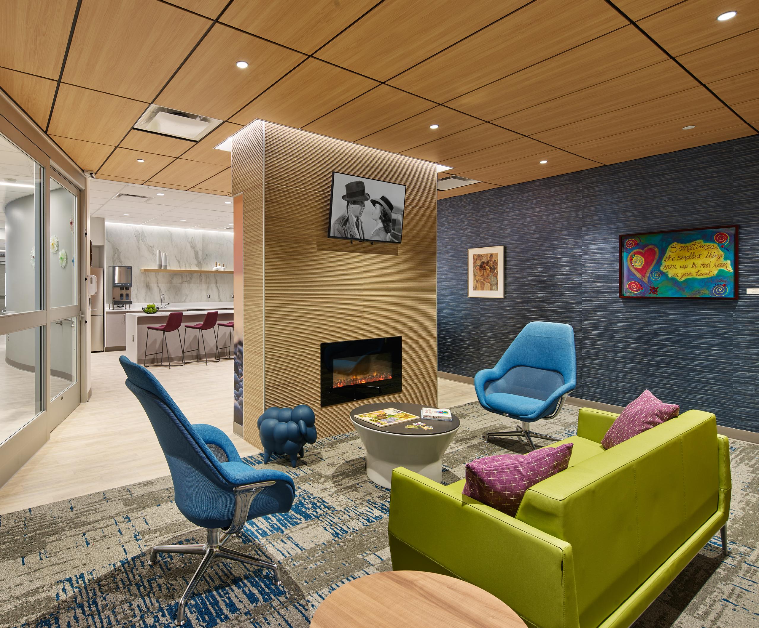 As a result, St. Mary’s redefines the healing experience by catering to the patient’s every need – including those beyond the clinical – providing a distraction from the oft-stressful healing journey by altering their perspective through comforting, creative, and efficient design. An array of comfortable seating areas and lounges, a variety of amenities, and artful design elements remove patients from the standard clinical experience and provide them with an abundance of choice, a sense of familiarity, and calm.