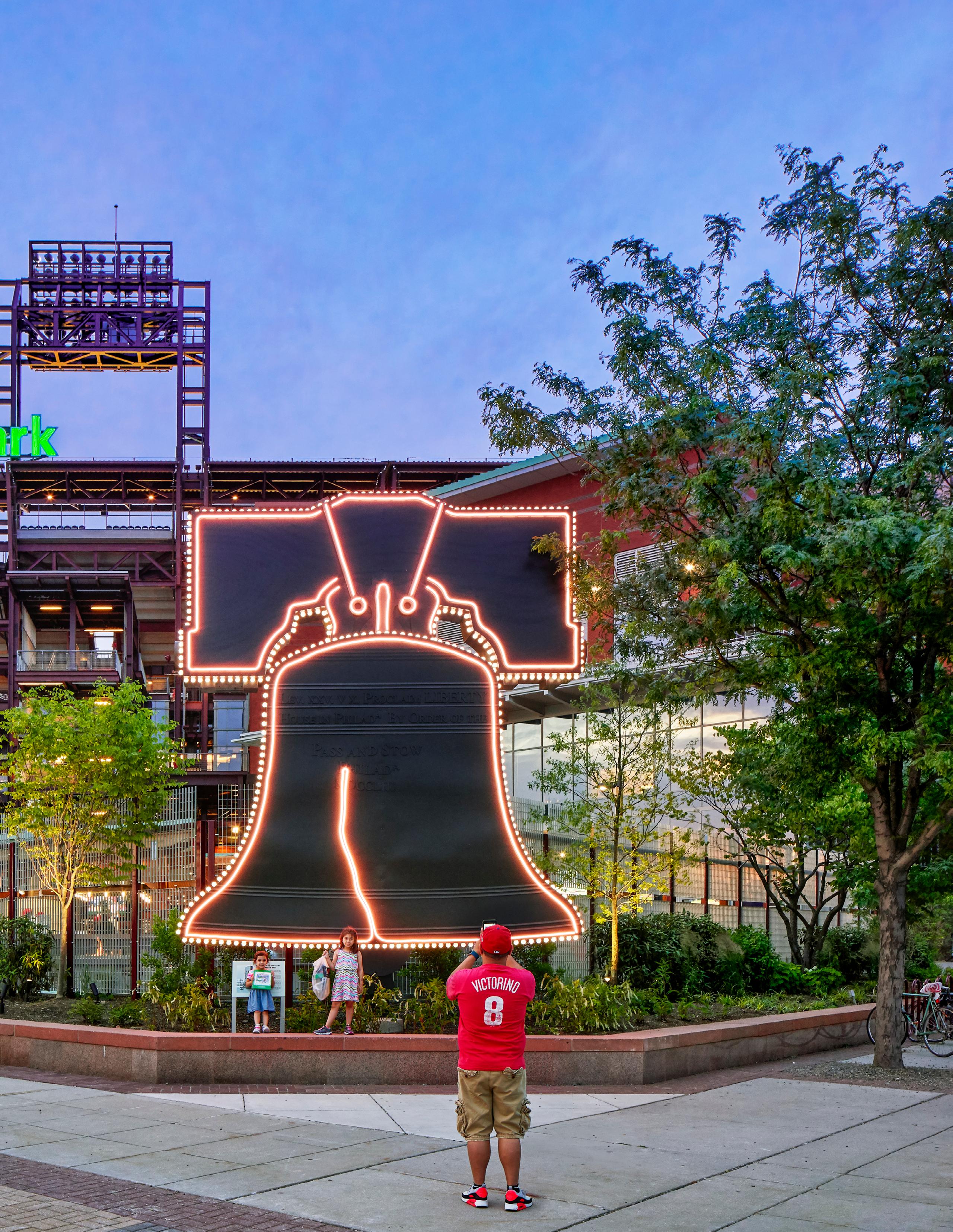 The Liberty Bell, a powerful symbol of Philadelphia, has featured prominently in the team's logos and stadiums throughout its history, reflecting its significance. A steel and aluminum bell replica that once sat atop Veterans Stadium now greets fans as they enter the third base gate. It had been lost for years following the Vet’s demolition.