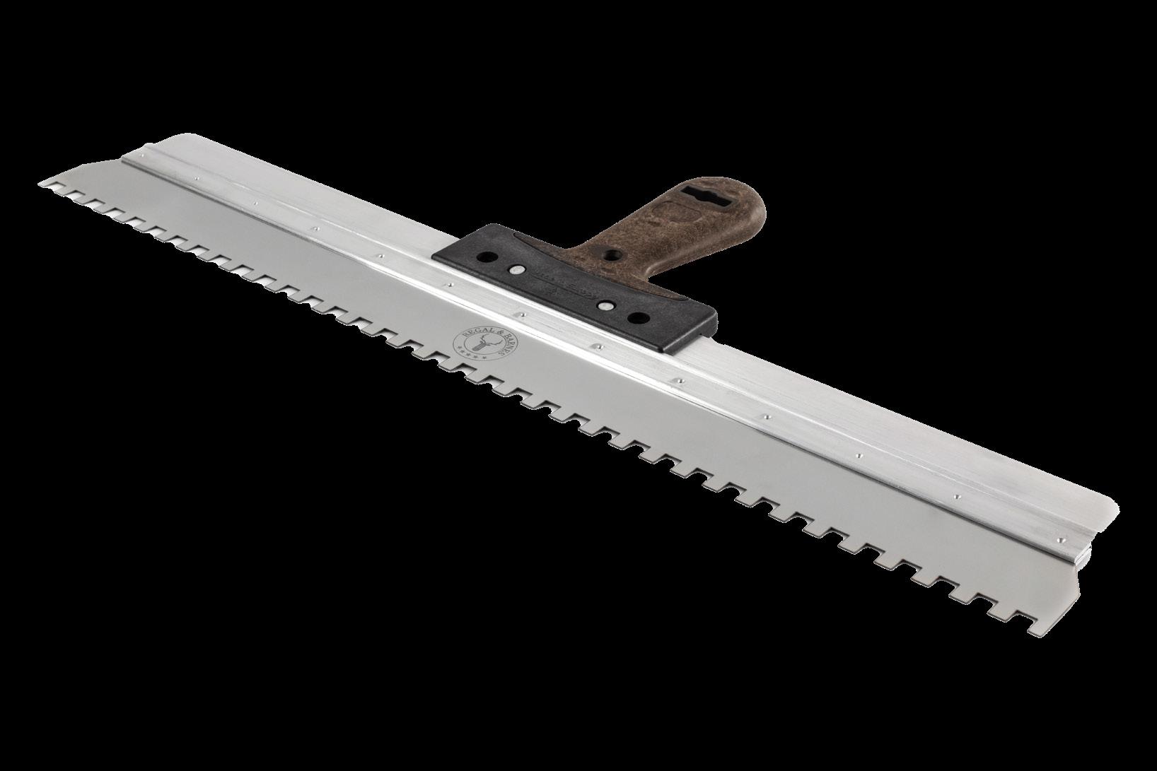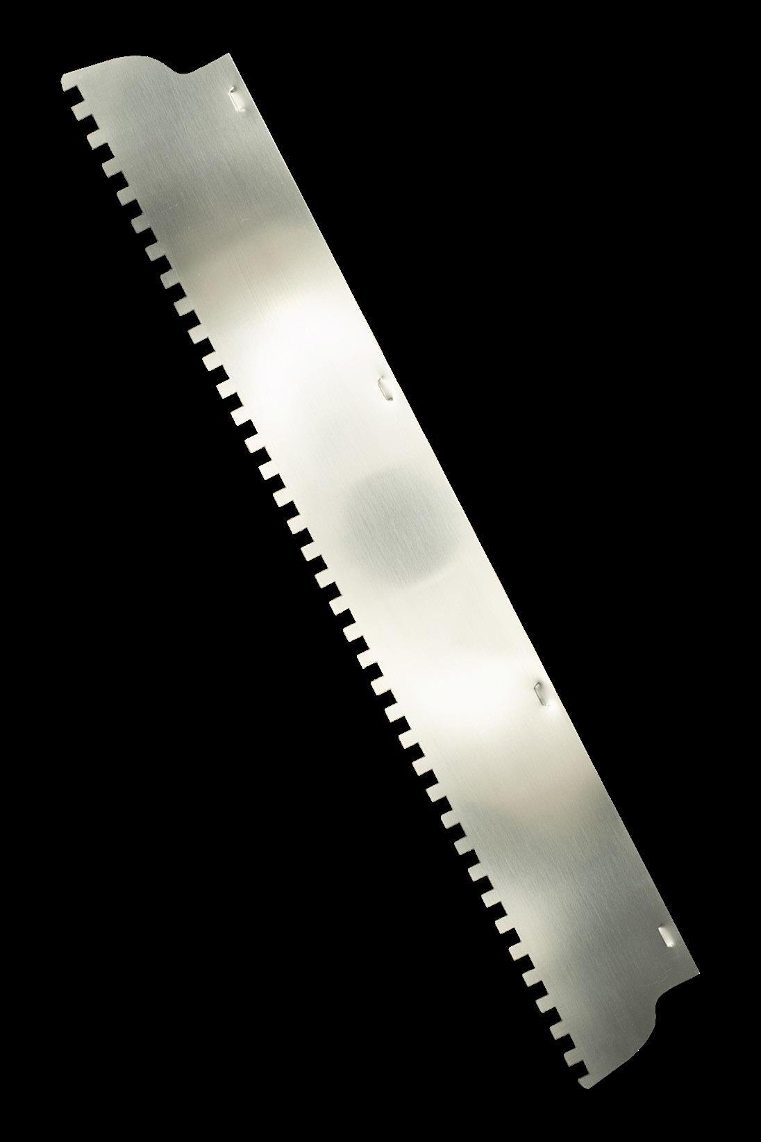 • Serrated triangle tooth blade that helps to remove air pockets trapped in the wet render during application, particularly from hand application.