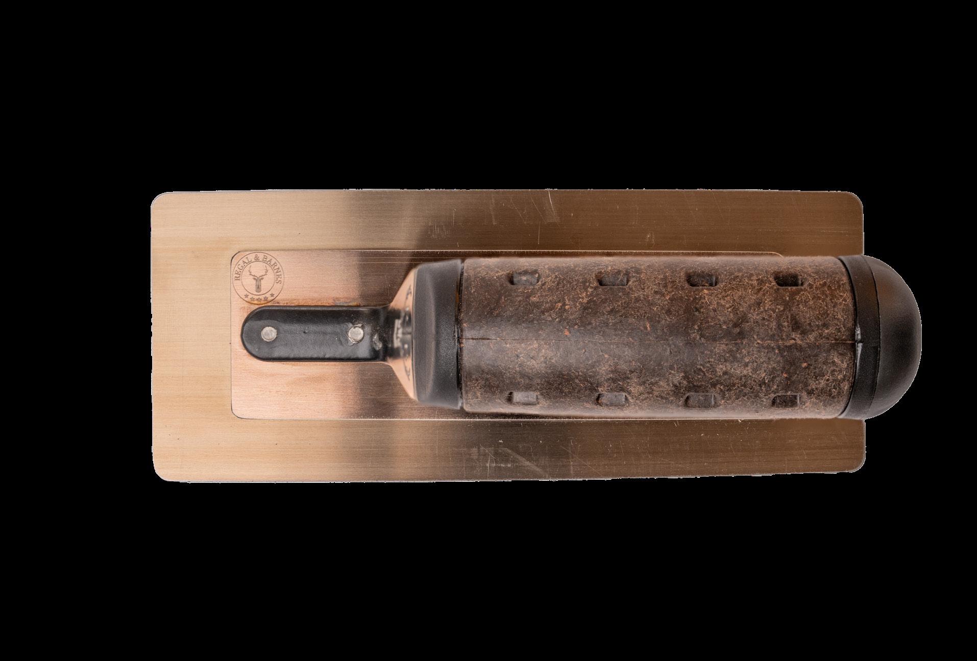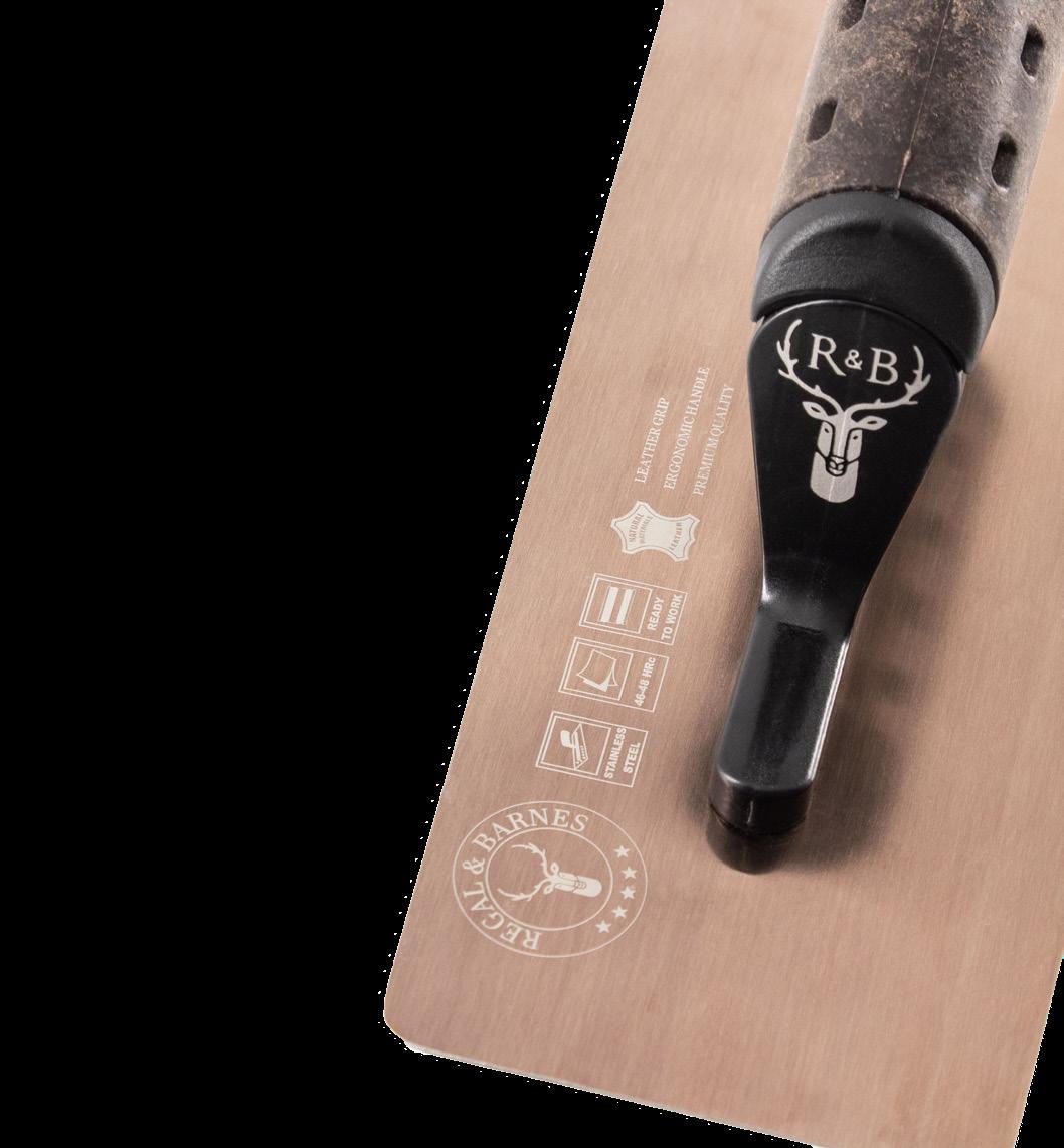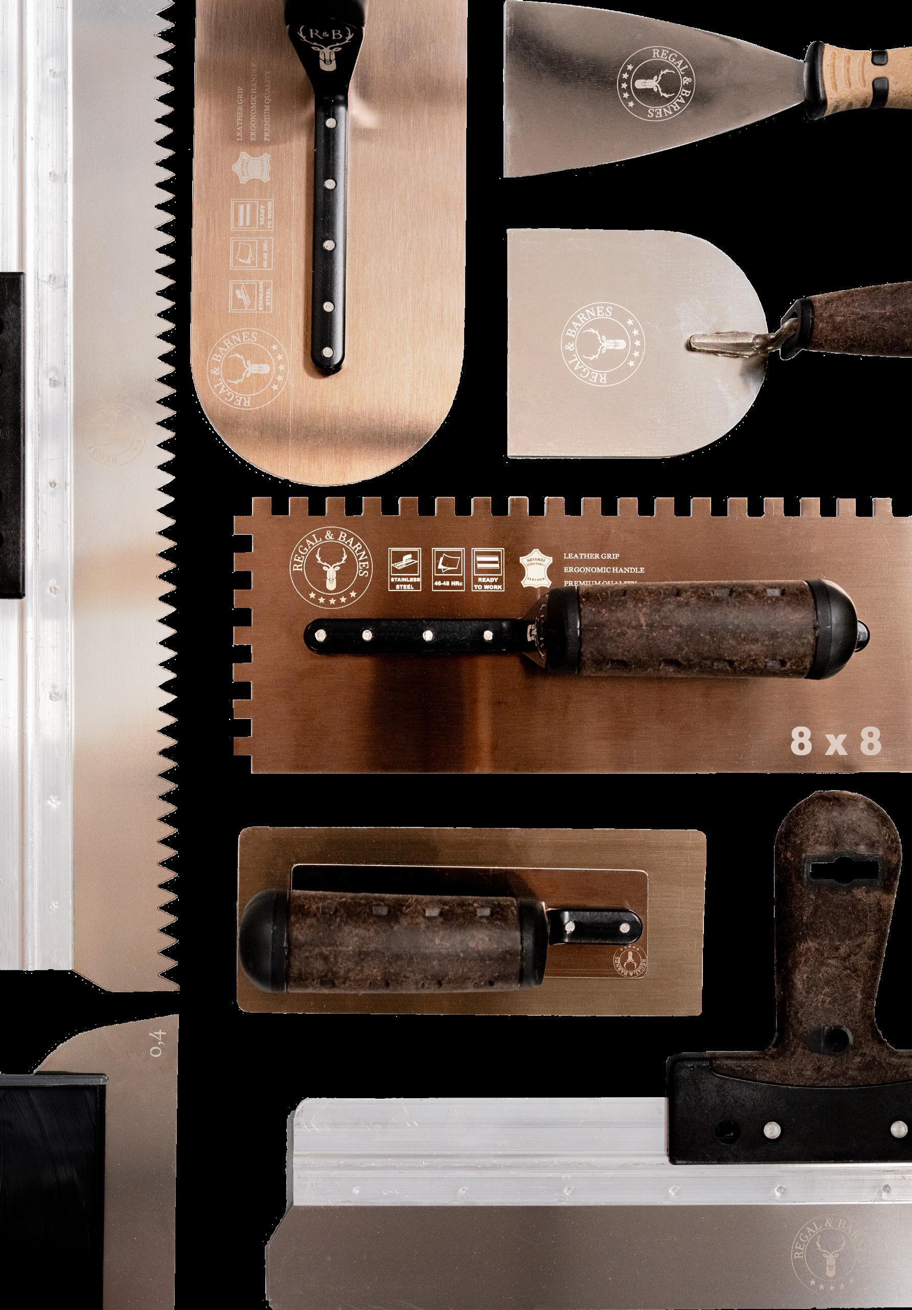 Initiated in 2015, Regal & Barnes set out to reinvigorate the plastering and rendering tool market. Tools are often easily dispensed with due to their abject quality and shoddy craftsmanship. We gave ourselves the task of turning these facts into myths. The Regal & Barnes range offers incredible versatility, from putty knives to skimming blades, to specialised pool trowels. Every product is expertly designed and crafted to deliver unmatched performance. More importantly, we want a tool to be for life. Our gold-hardened stainless steel blades are incredibly robust and durable. However, we never sacrifice comfort and handling at durability’s expense. Regal & Barnes tools boast ergonomic leather or cork handles, providing phenomenal breathability and grip. Innovative design allows handles to be replaced if necessary.