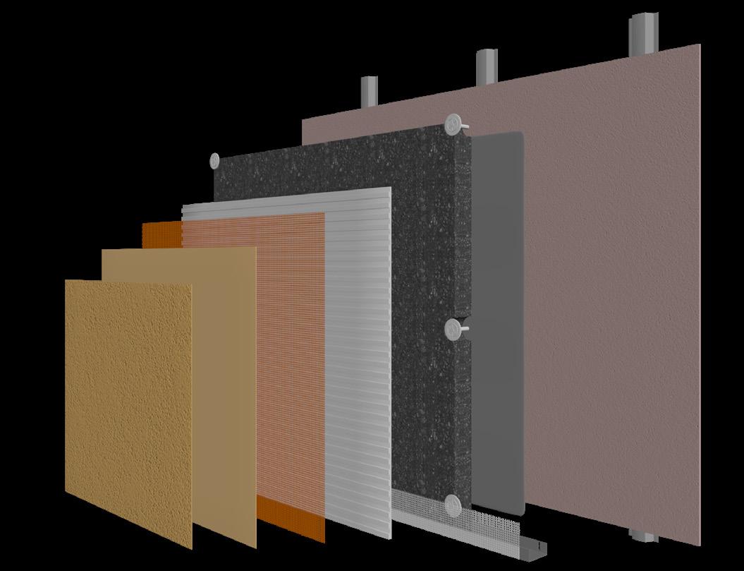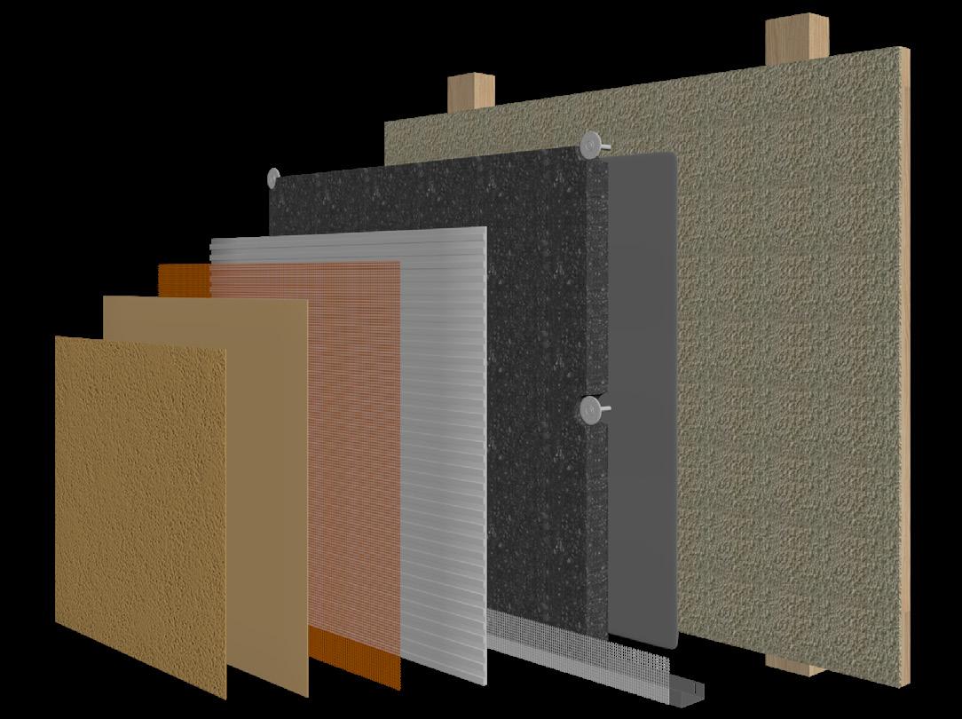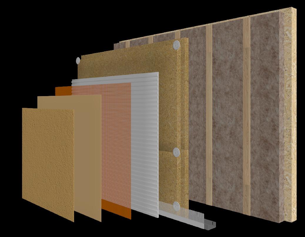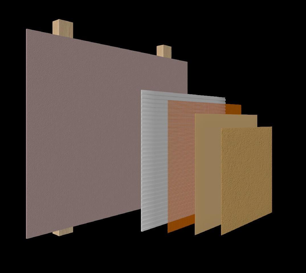 The presumption for the installation of the Mineral Wool & Mineral Render is that the carrying substrate is a sheathing board� These will typically be attached to either timber or steel frames, offering both weather protection for the structural elements, and additional structural support The sheathing board will normally be attached at 600mm centres to ensure an extremely robust substrate, capable of holding the insulation and render installation Most sheathing boards offer basic weather and fire protection.